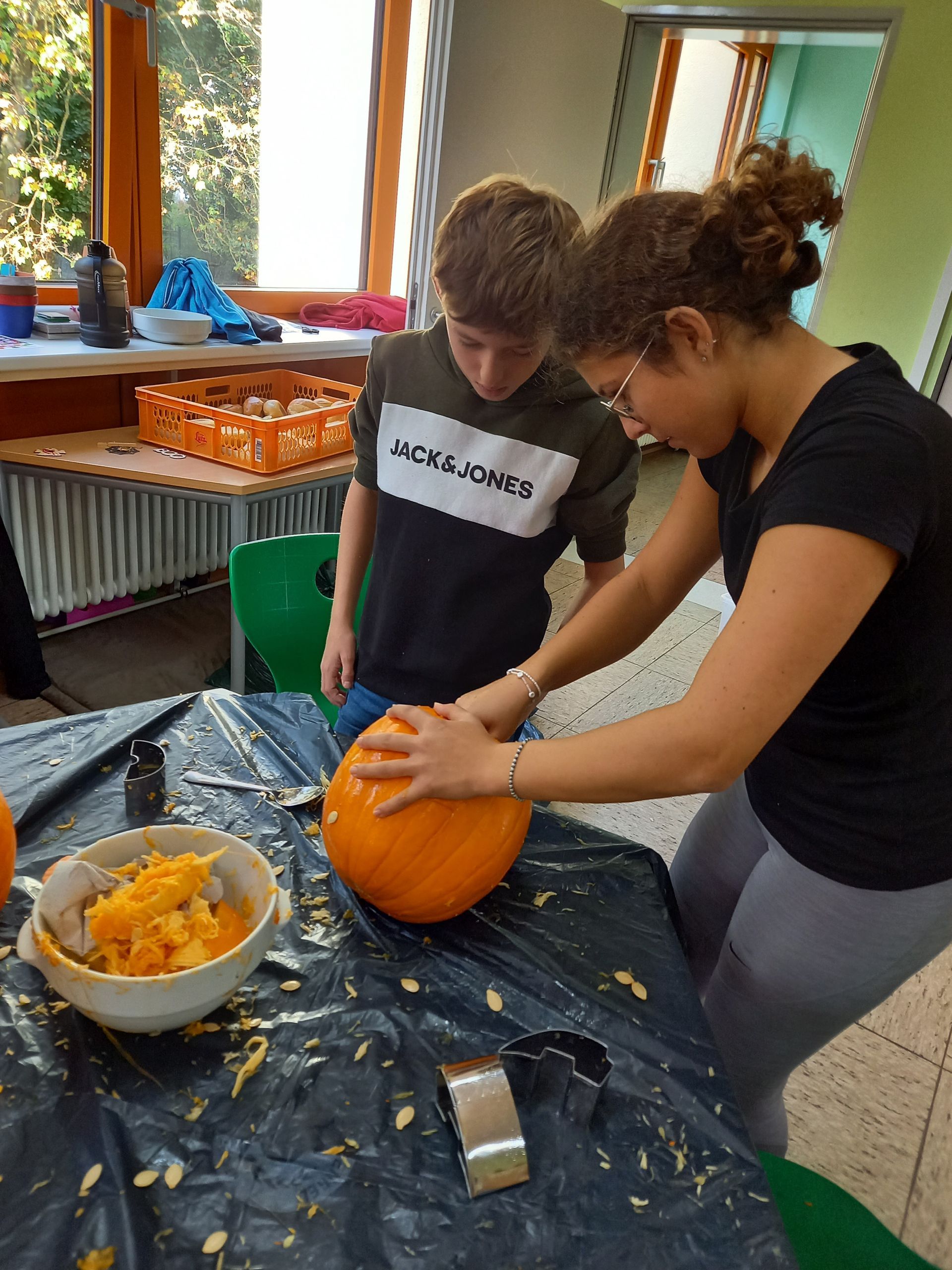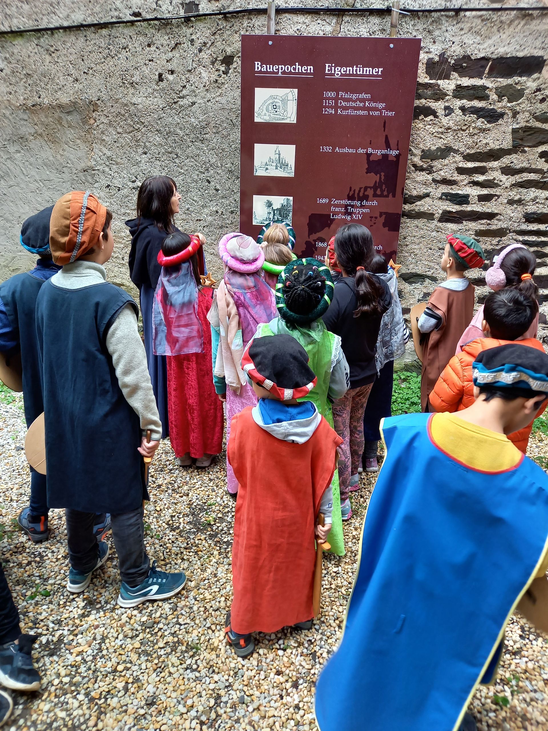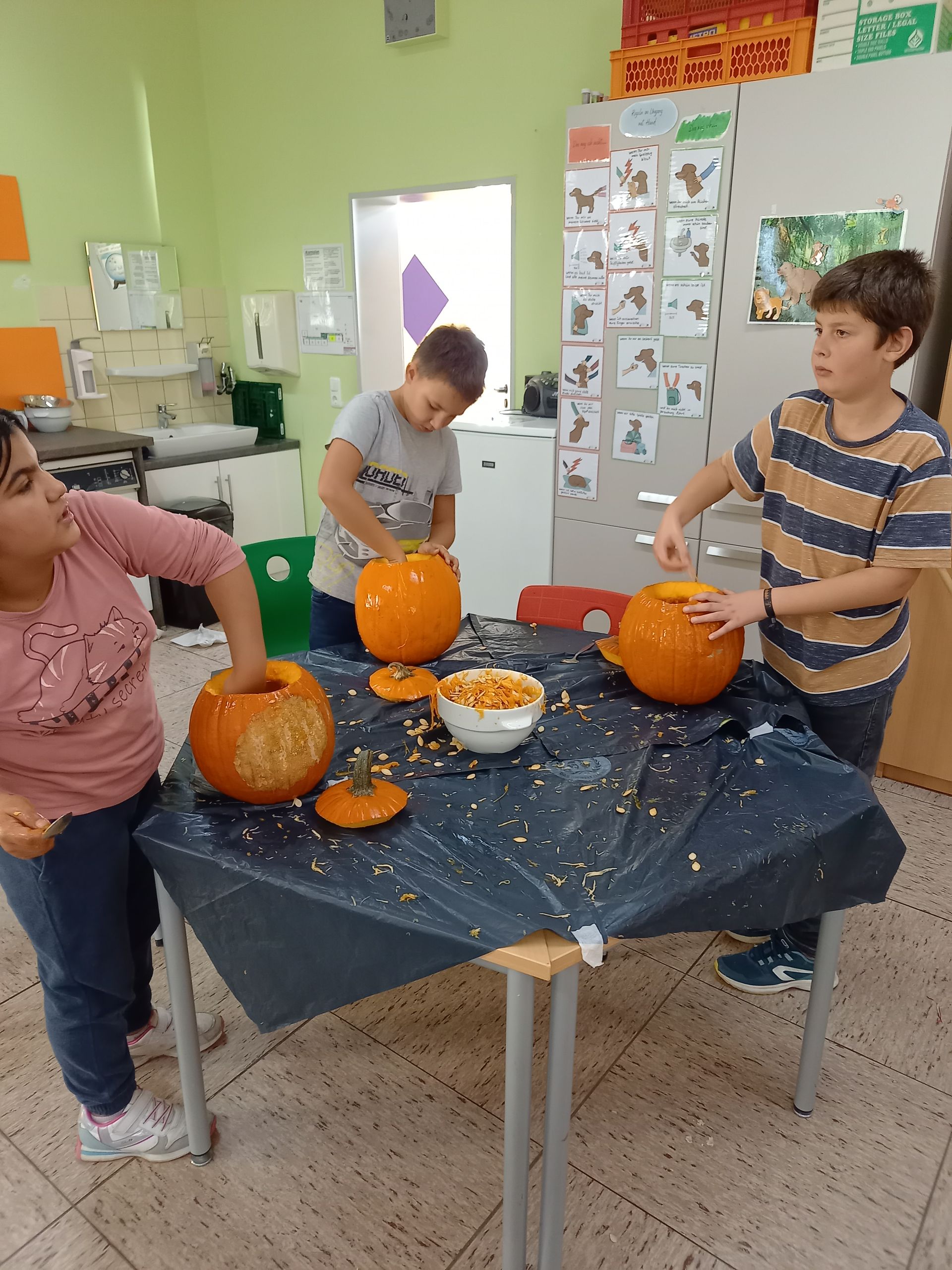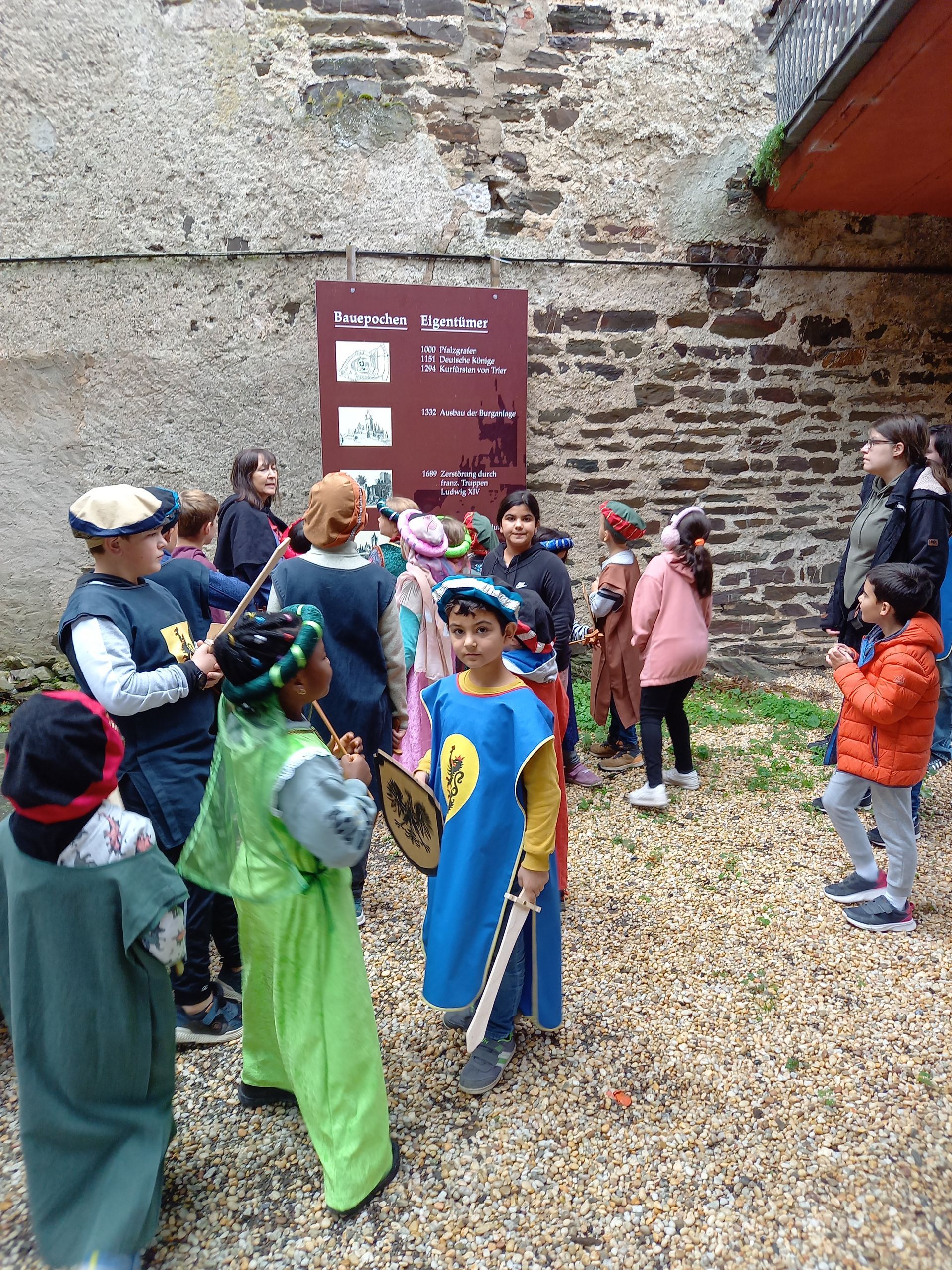 In der ersten Herbstferienwoche 16.10. – 20.10.2023 fand für 23 Grundschulkinder das BilBO Herbstferienprogramm in der Grundschule in Polch statt. Am Montag starteten alle Teilnehmenden mit einem ausgiebigen Frühstück in den Tag. Anschließend wurde die Gruppe von der „Bundesarbeitsgemeinschaft Rettungs- und Hundeführender Vereinigungen (BAG-RHV)“ besucht. Die BAG-RHV verwandelte den Schulhof in einen kleinen Trainingsplatz und zeigte den Kindern, wie die Hunde für Rettungseinsätze ausgebildet werden. Auch die Kinder konnten selbst aktiv werden und in Interaktion mit den Hunden treten aber auch selbst erfahren, was er bedeutet durch einen dunklen Tunnel zu kriechen oder mit einer Seilbahn abgeseilt zu werden. Es war ein tolles Erlebnis für die gesamte Gruppe. Am Dienstag konnten die Kinder herbstliche Fensterdekoration basteln, Gesellschaftsspiele spielen oder sich bei tollen Bewegungsangeboten in der Sporthalle auspowern. Am Nachmittag besuchte die Gruppe bei schönstem Sonnenschein den nahegelegenen Spielplatz. Am Vormittag des dritten Tages stand das ersehnte Kürbisschnitzen auf dem Programm. Mit viel Geduld und Motivation hüllten die Grundschüler und Grundschülerinnen ihre Kürbisse aus und schnitzen tolle Gesichter. Nach dem Mittagessen wurden viele Spiele gespielt und sich in der Turnhalle ausgetobt. Am Donnerstag stand der Ausflug der Woche auf dem Programm. Um halb zehn fuhr der Bus von Polch aus los Richtung Cochem. Schon vom Moselufer aus bewunderten die Kinder die Burg. Nach einer kleinen, aber doch anstrengenden Wanderung erreichte die Gruppe das Ziel. Nachdem das Souvenirgeschäft geplündert wurde, startete die interaktive Führung. Zu Beginn kleideten sich alle Kinder dem Burgflair entsprechend. Anschließend wurde die Burg erkundet. Das Highlight des Tages war der letzte Raum. Hier konnten die Kinder ein Kettenhemd und Teile einer Ritterrüstung anprobieren, ein Spinnrad bedienen und echte Schwerter einmal anfassen. Nach dieser aufregenden und spannenden Führung fuhr die Gruppe um 15:00 Uhr zurück nach Polch. Den letzten Tag verbrachte die Gruppe etwas ruhiger in der Schule. Es war deutlich zu spüren, dass viele Kinder von der abwechslungsreichen Woche müde waren. Daher wurden Kürbisse und Fledermäuse gebastelt, Spiele gespielt, in der Kuschelecke entspannt oder noch einmal in der Sporthalle gespielt. Am Ende waren sich alle Kinder einig, dass es eine tolle Woche war. Viele freuten sich schon auf die zweite Woche und damit auf das Maifelder Herbstferienprogramm. Auch die Verantwortliche Katharina Schweitzer (Schulsozialarbeitern und Leitung des BilBO Projektes an der Grundschule Polch) blickt auf eine tolle Woche zurück und bedanken sich bei den Teamer*innen für ihren Einsatz. Alle Kinder, Teamer*innen und Verantwortlichen freuen sich schon auf die Ferienprogramme im nächsten Jahr.