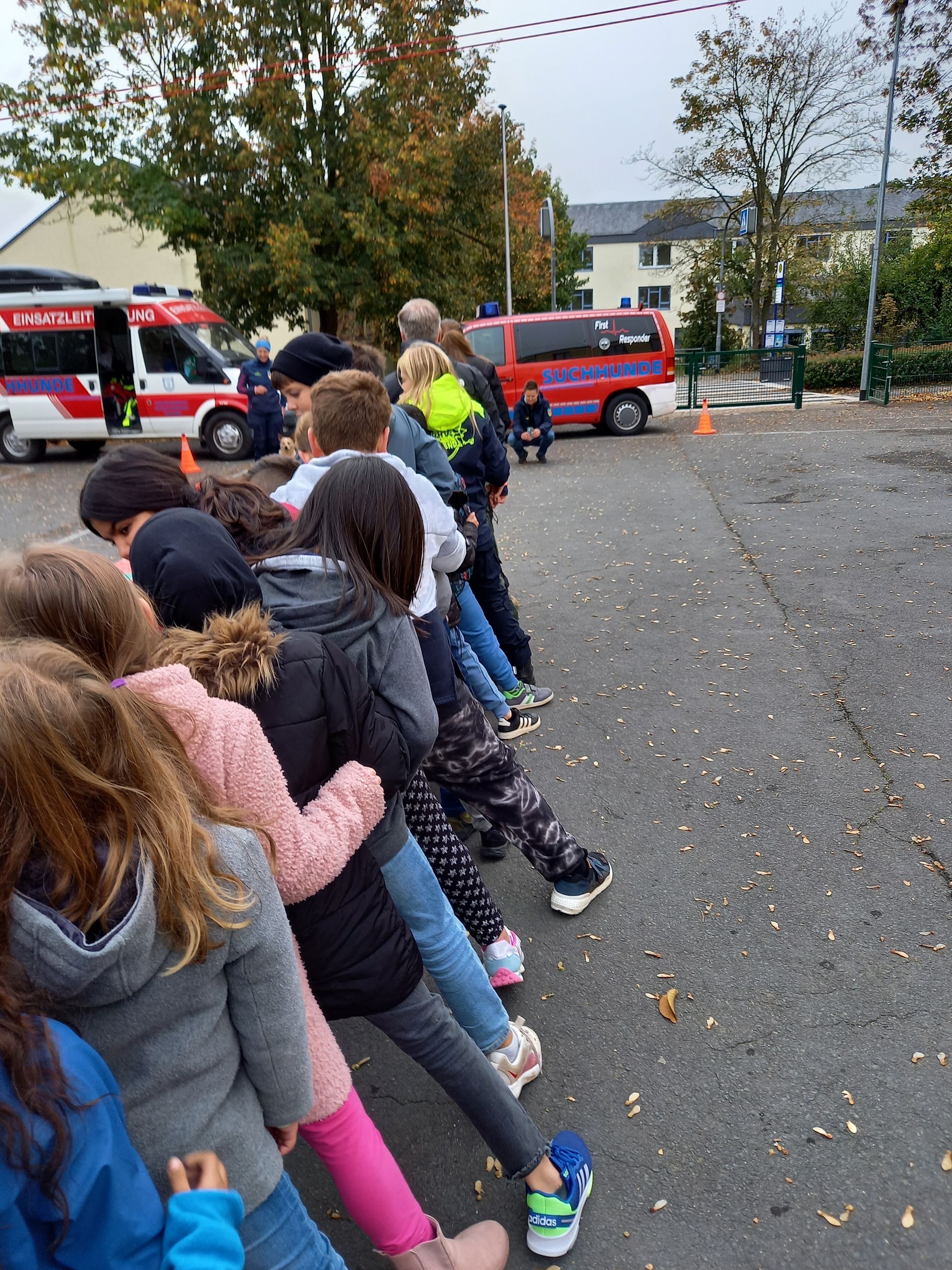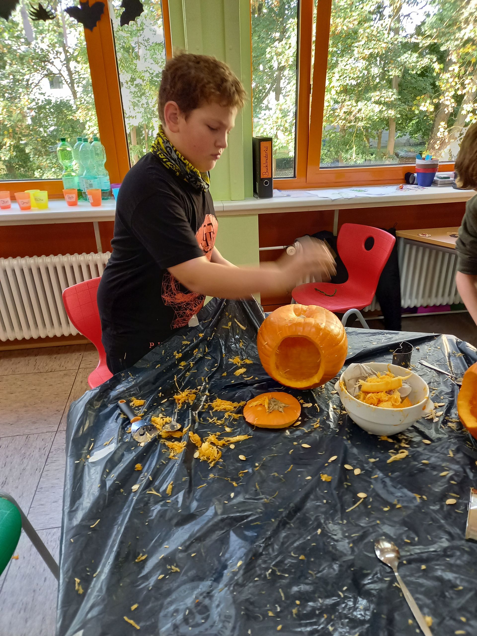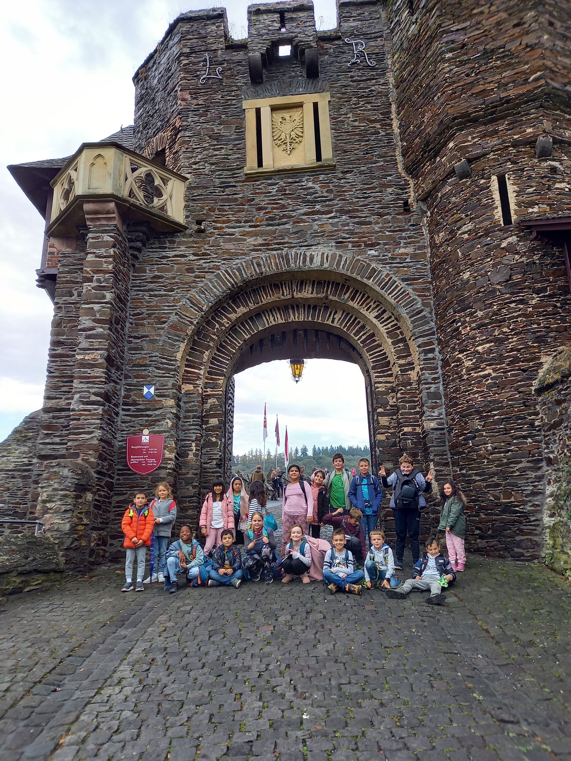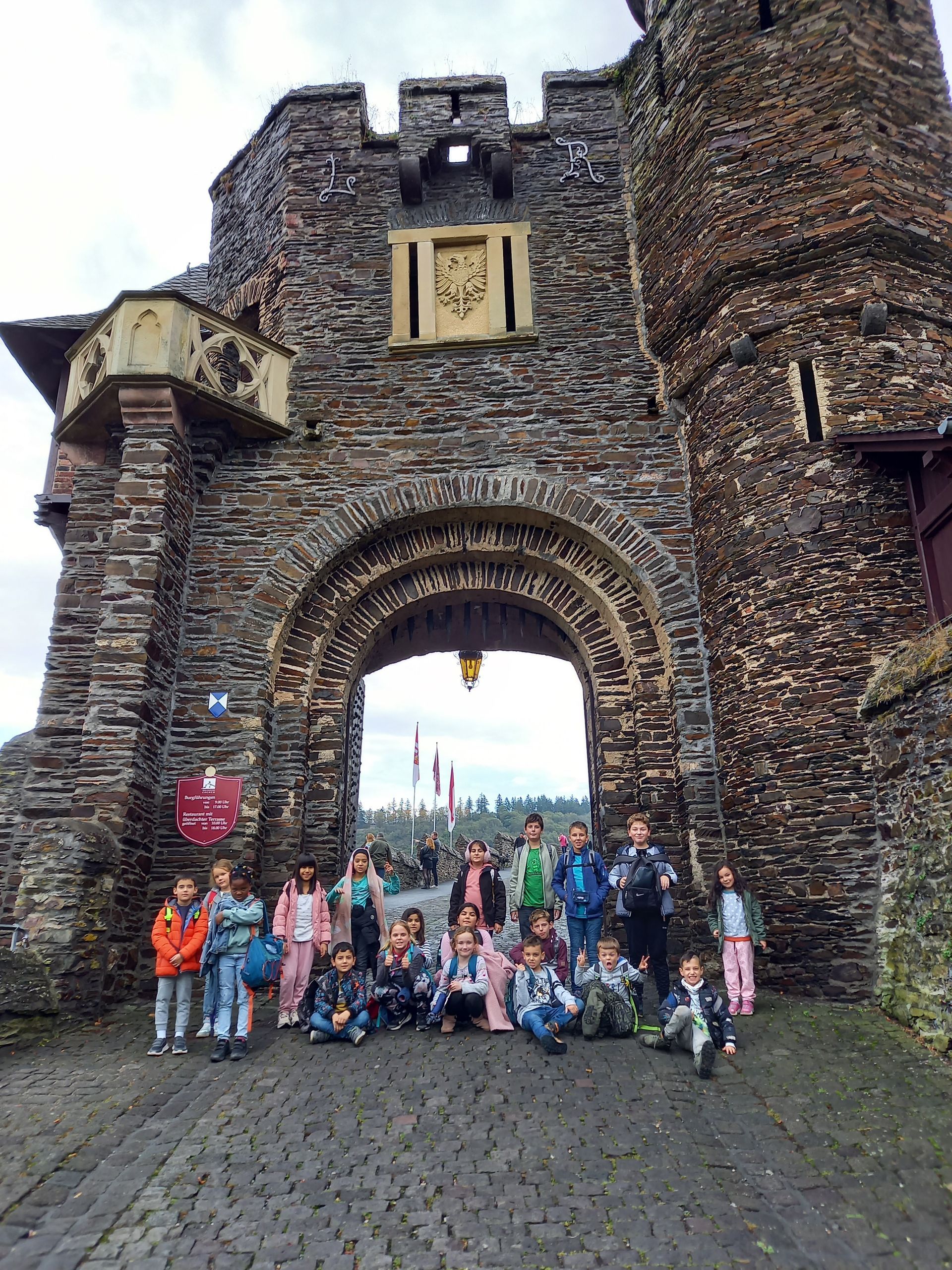 In der ersten Herbstferienwoche 16.10. – 20.10.2023 fand für 23 Grundschulkinder das BilBO Herbstferienprogramm in der Grundschule in Polch statt. Am Montag starteten alle Teilnehmenden mit einem ausgiebigen Frühstück in den Tag. Anschließend wurde die Gruppe von der „Bundesarbeitsgemeinschaft Rettungs- und Hundeführender Vereinigungen (BAG-RHV)“ besucht. Die BAG-RHV verwandelte den Schulhof in einen kleinen Trainingsplatz und zeigte den Kindern, wie die Hunde für Rettungseinsätze ausgebildet werden. Auch die Kinder konnten selbst aktiv werden und in Interaktion mit den Hunden treten aber auch selbst erfahren, was er bedeutet durch einen dunklen Tunnel zu kriechen oder mit einer Seilbahn abgeseilt zu werden. Es war ein tolles Erlebnis für die gesamte Gruppe. Am Dienstag konnten die Kinder herbstliche Fensterdekoration basteln, Gesellschaftsspiele spielen oder sich bei tollen Bewegungsangeboten in der Sporthalle auspowern. Am Nachmittag besuchte die Gruppe bei schönstem Sonnenschein den nahegelegenen Spielplatz. Am Vormittag des dritten Tages stand das ersehnte Kürbisschnitzen auf dem Programm. Mit viel Geduld und Motivation hüllten die Grundschüler und Grundschülerinnen ihre Kürbisse aus und schnitzen tolle Gesichter. Nach dem Mittagessen wurden viele Spiele gespielt und sich in der Turnhalle ausgetobt. Am Donnerstag stand der Ausflug der Woche auf dem Programm. Um halb zehn fuhr der Bus von Polch aus los Richtung Cochem. Schon vom Moselufer aus bewunderten die Kinder die Burg. Nach einer kleinen, aber doch anstrengenden Wanderung erreichte die Gruppe das Ziel. Nachdem das Souvenirgeschäft geplündert wurde, startete die interaktive Führung. Zu Beginn kleideten sich alle Kinder dem Burgflair entsprechend. Anschließend wurde die Burg erkundet. Das Highlight des Tages war der letzte Raum. Hier konnten die Kinder ein Kettenhemd und Teile einer Ritterrüstung anprobieren, ein Spinnrad bedienen und echte Schwerter einmal anfassen. Nach dieser aufregenden und spannenden Führung fuhr die Gruppe um 15:00 Uhr zurück nach Polch. Den letzten Tag verbrachte die Gruppe etwas ruhiger in der Schule. Es war deutlich zu spüren, dass viele Kinder von der abwechslungsreichen Woche müde waren. Daher wurden Kürbisse und Fledermäuse gebastelt, Spiele gespielt, in der Kuschelecke entspannt oder noch einmal in der Sporthalle gespielt. Am Ende waren sich alle Kinder einig, dass es eine tolle Woche war. Viele freuten sich schon auf die zweite Woche und damit auf das Maifelder Herbstferienprogramm. Auch die Verantwortliche Katharina Schweitzer (Schulsozialarbeitern und Leitung des BilBO Projektes an der Grundschule Polch) blickt auf eine tolle Woche zurück und bedanken sich bei den Teamer*innen für ihren Einsatz. Alle Kinder, Teamer*innen und Verantwortlichen freuen sich schon auf die Ferienprogramme im nächsten Jahr.