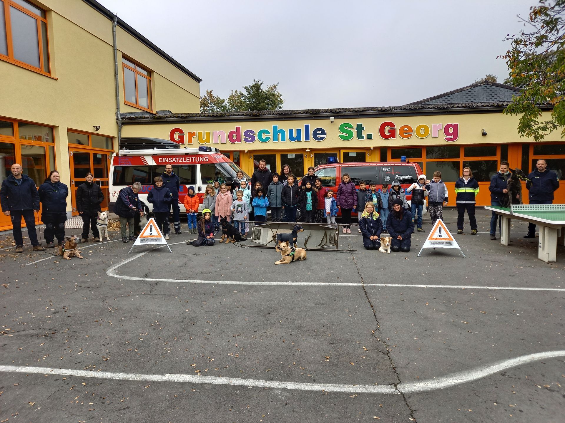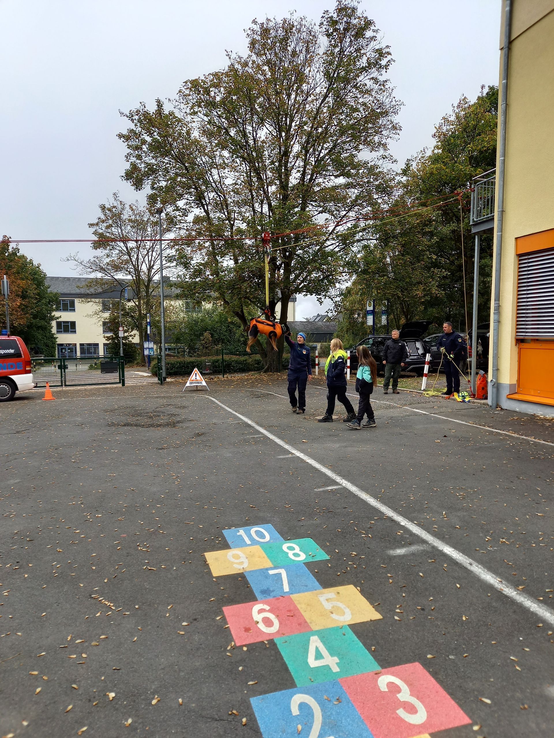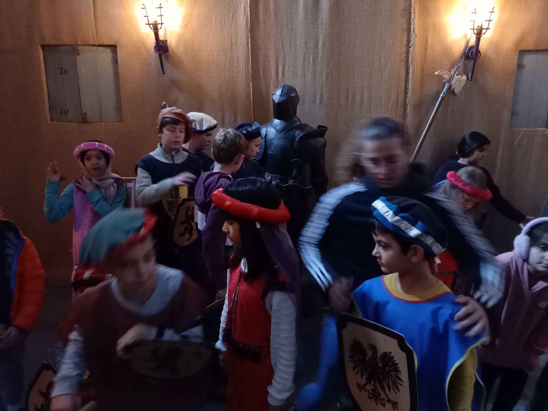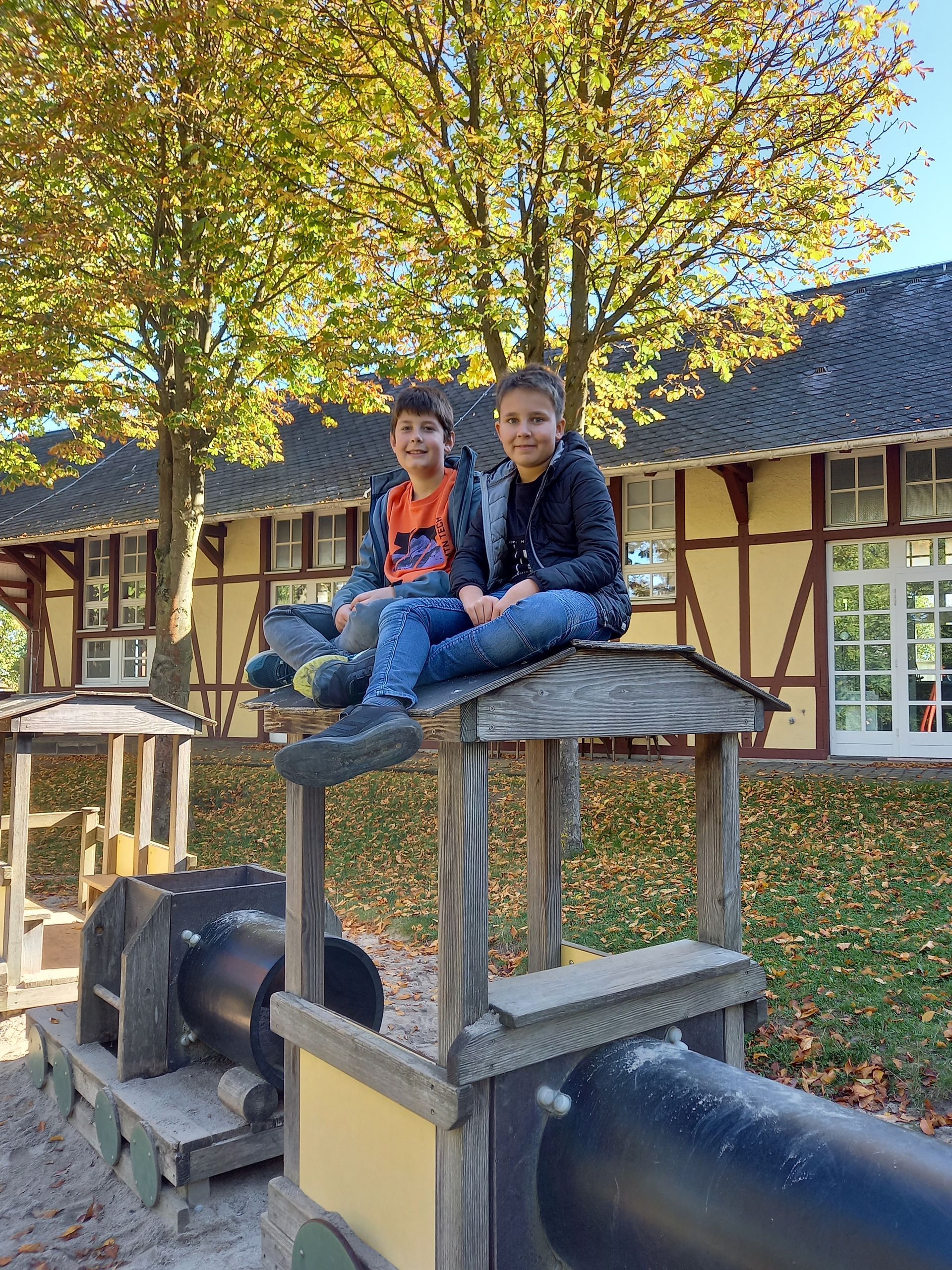 In der ersten Herbstferienwoche 16.10. – 20.10.2023 fand für 23 Grundschulkinder das BilBO Herbstferienprogramm in der Grundschule in Polch statt. Am Montag starteten alle Teilnehmenden mit einem ausgiebigen Frühstück in den Tag. Anschließend wurde die Gruppe von der „Bundesarbeitsgemeinschaft Rettungs- und Hundeführender Vereinigungen (BAG-RHV)“ besucht. Die BAG-RHV verwandelte den Schulhof in einen kleinen Trainingsplatz und zeigte den Kindern, wie die Hunde für Rettungseinsätze ausgebildet werden. Auch die Kinder konnten selbst aktiv werden und in Interaktion mit den Hunden treten aber auch selbst erfahren, was er bedeutet durch einen dunklen Tunnel zu kriechen oder mit einer Seilbahn abgeseilt zu werden. Es war ein tolles Erlebnis für die gesamte Gruppe. Am Dienstag konnten die Kinder herbstliche Fensterdekoration basteln, Gesellschaftsspiele spielen oder sich bei tollen Bewegungsangeboten in der Sporthalle auspowern. Am Nachmittag besuchte die Gruppe bei schönstem Sonnenschein den nahegelegenen Spielplatz. Am Vormittag des dritten Tages stand das ersehnte Kürbisschnitzen auf dem Programm. Mit viel Geduld und Motivation hüllten die Grundschüler und Grundschülerinnen ihre Kürbisse aus und schnitzen tolle Gesichter. Nach dem Mittagessen wurden viele Spiele gespielt und sich in der Turnhalle ausgetobt. Am Donnerstag stand der Ausflug der Woche auf dem Programm. Um halb zehn fuhr der Bus von Polch aus los Richtung Cochem. Schon vom Moselufer aus bewunderten die Kinder die Burg. Nach einer kleinen, aber doch anstrengenden Wanderung erreichte die Gruppe das Ziel. Nachdem das Souvenirgeschäft geplündert wurde, startete die interaktive Führung. Zu Beginn kleideten sich alle Kinder dem Burgflair entsprechend. Anschließend wurde die Burg erkundet. Das Highlight des Tages war der letzte Raum. Hier konnten die Kinder ein Kettenhemd und Teile einer Ritterrüstung anprobieren, ein Spinnrad bedienen und echte Schwerter einmal anfassen. Nach dieser aufregenden und spannenden Führung fuhr die Gruppe um 15:00 Uhr zurück nach Polch. Den letzten Tag verbrachte die Gruppe etwas ruhiger in der Schule. Es war deutlich zu spüren, dass viele Kinder von der abwechslungsreichen Woche müde waren. Daher wurden Kürbisse und Fledermäuse gebastelt, Spiele gespielt, in der Kuschelecke entspannt oder noch einmal in der Sporthalle gespielt. Am Ende waren sich alle Kinder einig, dass es eine tolle Woche war. Viele freuten sich schon auf die zweite Woche und damit auf das Maifelder Herbstferienprogramm. Auch die Verantwortliche Katharina Schweitzer (Schulsozialarbeitern und Leitung des BilBO Projektes an der Grundschule Polch) blickt auf eine tolle Woche zurück und bedanken sich bei den Teamer*innen für ihren Einsatz. Alle Kinder, Teamer*innen und Verantwortlichen freuen sich schon auf die Ferienprogramme im nächsten Jahr.