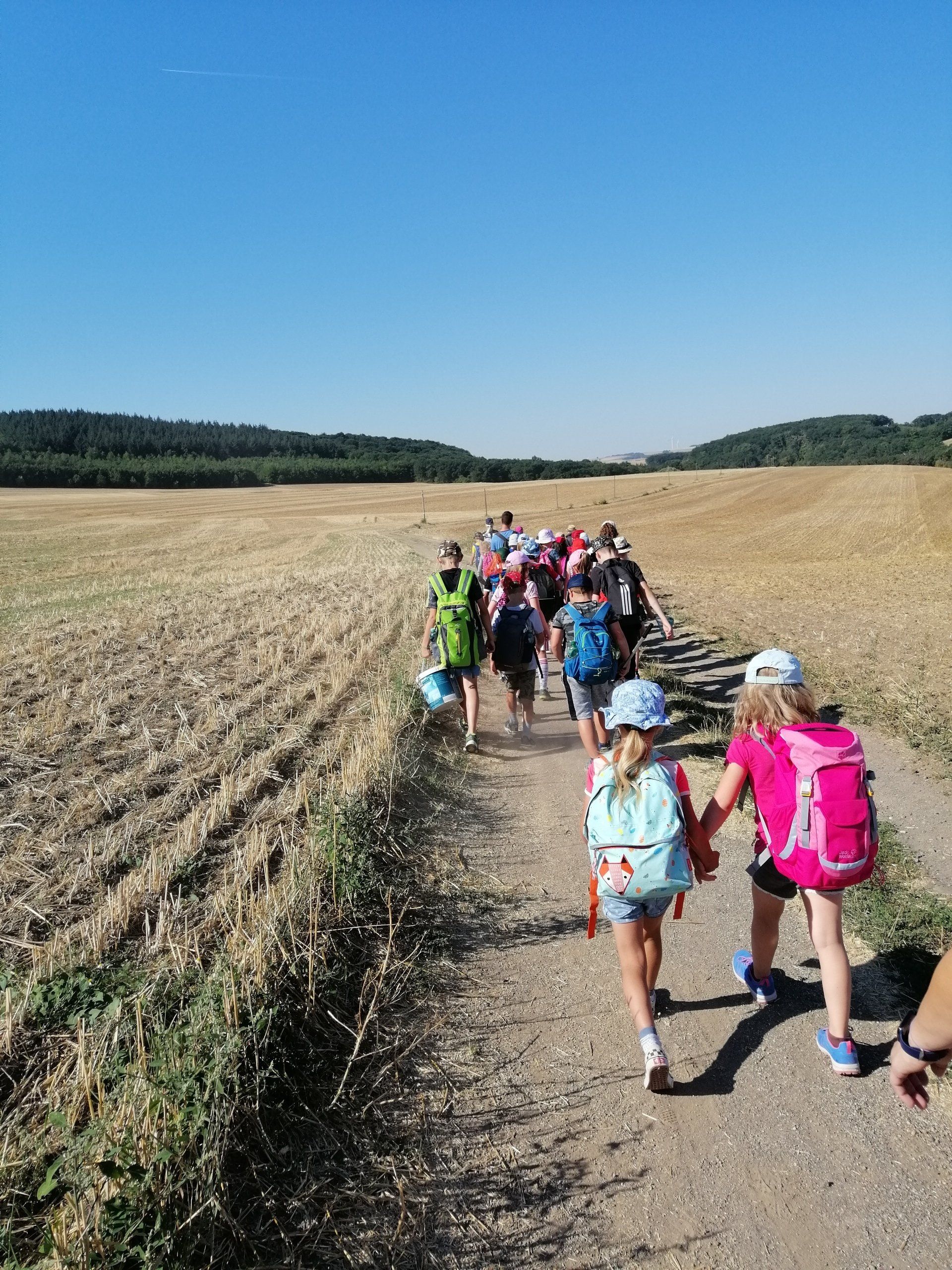 In der zweiten Ferienwoche konnten die Kinder wählen, ob sie an einer kleinen Wanderung mit Schatzsuche von Bassenheim nach Mülheim-Kärlich teilnehmen oder lieber direkt mit dem Bus zum Wasserspielplatz fahren wollten. Die tapferen Kinder, die trotz der warmen Temperaturen die Wanderung wählten, freuten sich anschließend umso mehr über das kühle Nass.