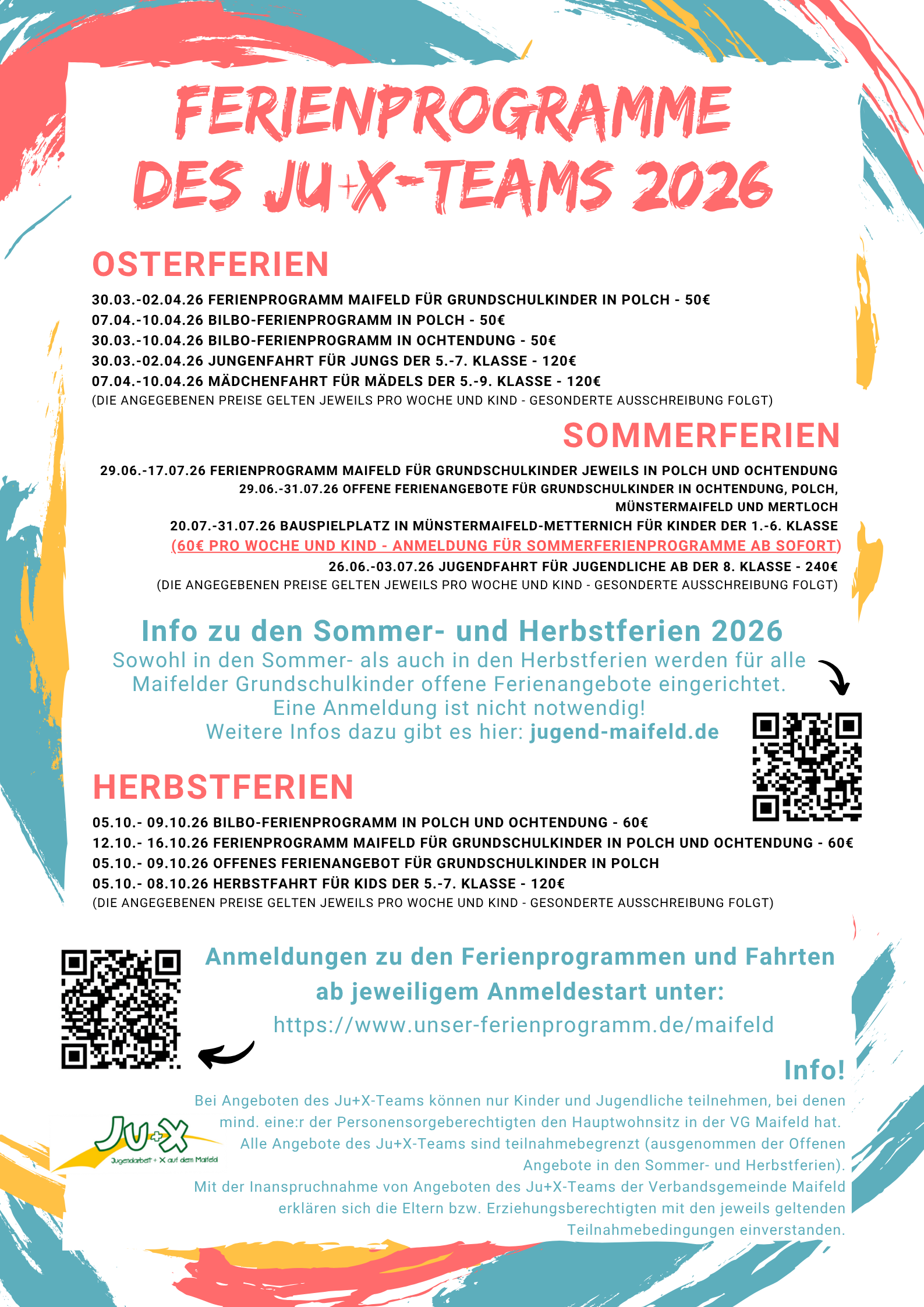 Herzlich Willkommen auf der Website des Ju+X-Teams der Verbandsgemeinde Maifeld