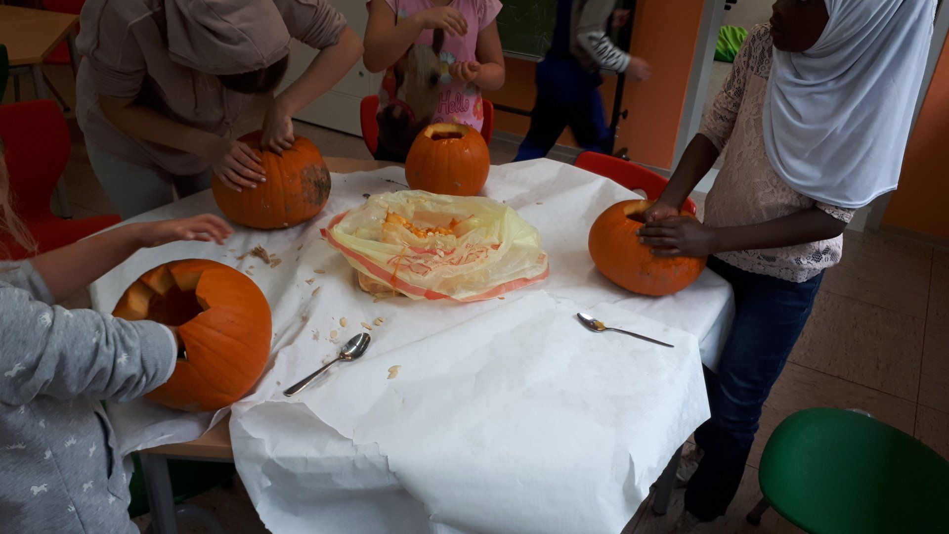 Am Montag und Dienstag starteten alle Teilnehmenden gemeinsam mit einem ausgiebigen Frühstück und einer anschließenden und ausgiebigen Spiel- und Spaßrunde in der Turnhalle. Im Anschluss hatten alle Kinder die Möglichkeit aus weiteren Beschäftigungsangeboten zu wählen. Zum einen waren die abwechslungsreichen und kreativen Bastelangebote sehr beliebt. So wurden am Montag Kürbisse aus Tonpapier und am Dienstag, zum Einstimmen auf den bevorstehenden Ausflug ins Planetarium am Folgetag, Raketen gebastelt. Zum anderen wurde von allen Kindern die Möglichkeit rauszugehen rege genutzt. Die allermeisten Kinder waren jedoch über den Tag in der Turnhalle anzutreffen, in der abwechslungsreiche Spiel- und Bewegungsangebote bereitgehalten wurden.