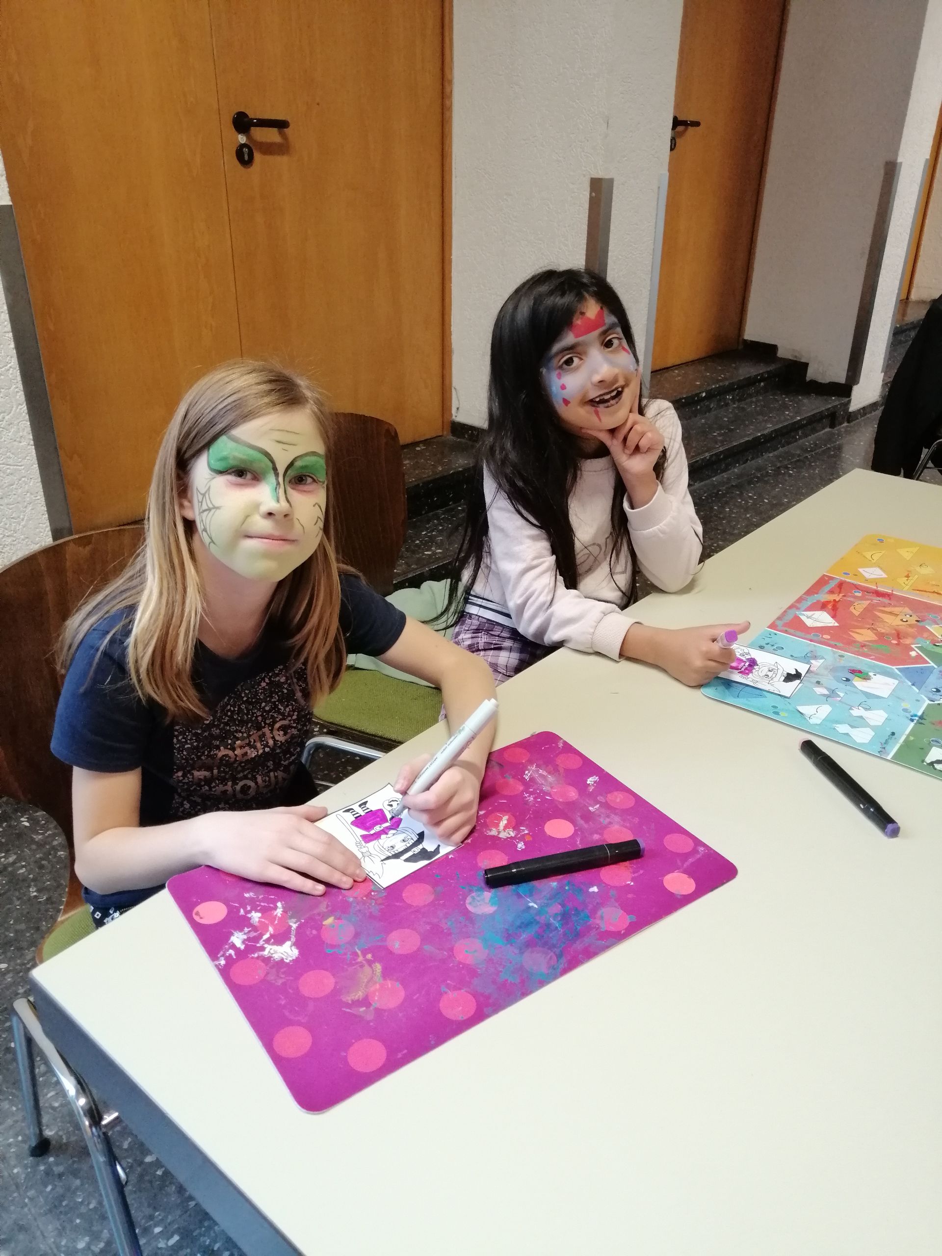 Das Programm orientierte sich thematisch an der aktuellen Jahreszeit, sodass in der ersten Woche herbstliche Drachen und Vogelscheuchen gebastelt wurden. In der zweiten Ferienwoche konnten die Kinder Halloweengirlanden und Vampirlaternen basteln und sich gruselig schminken lassen.