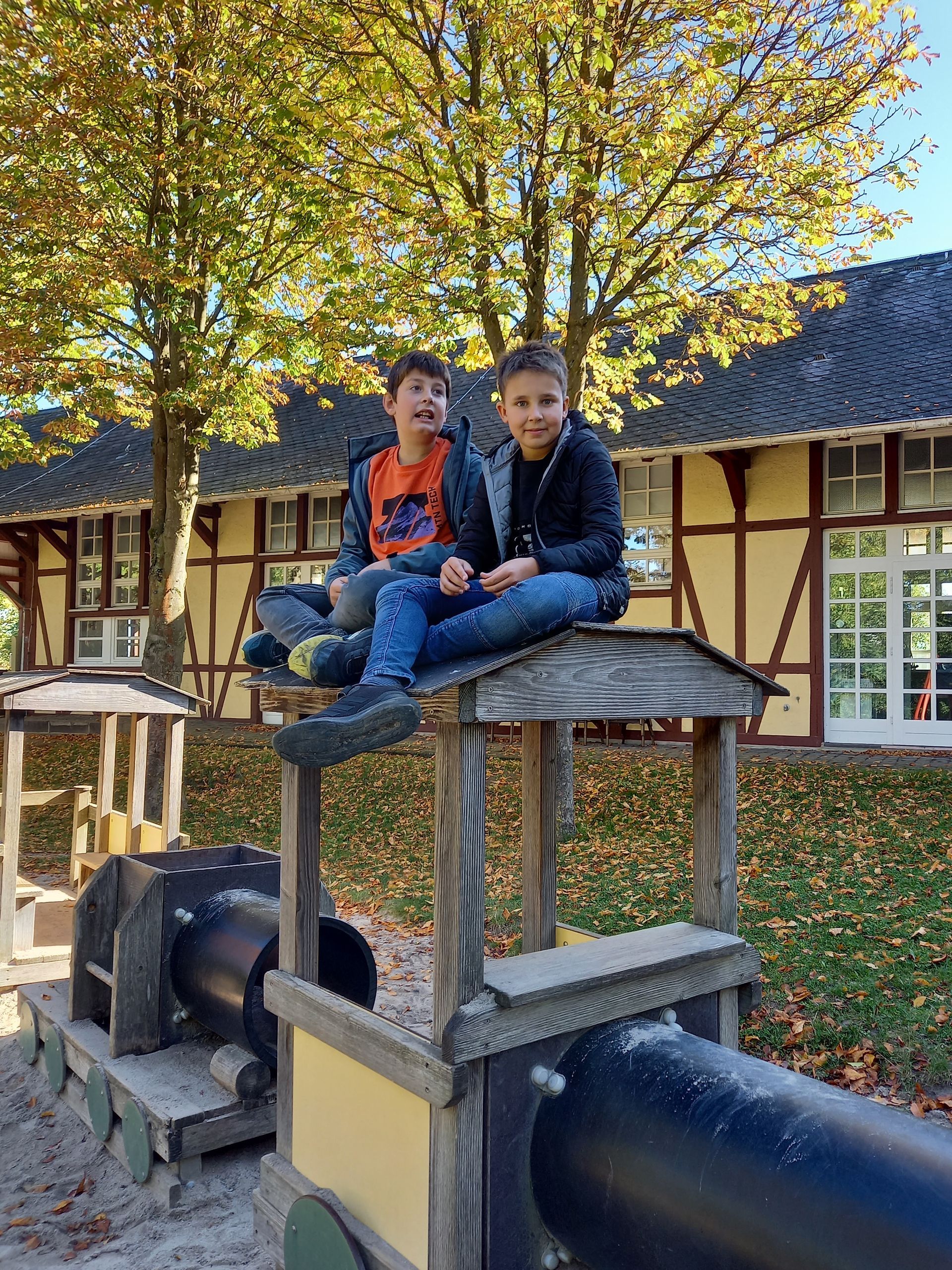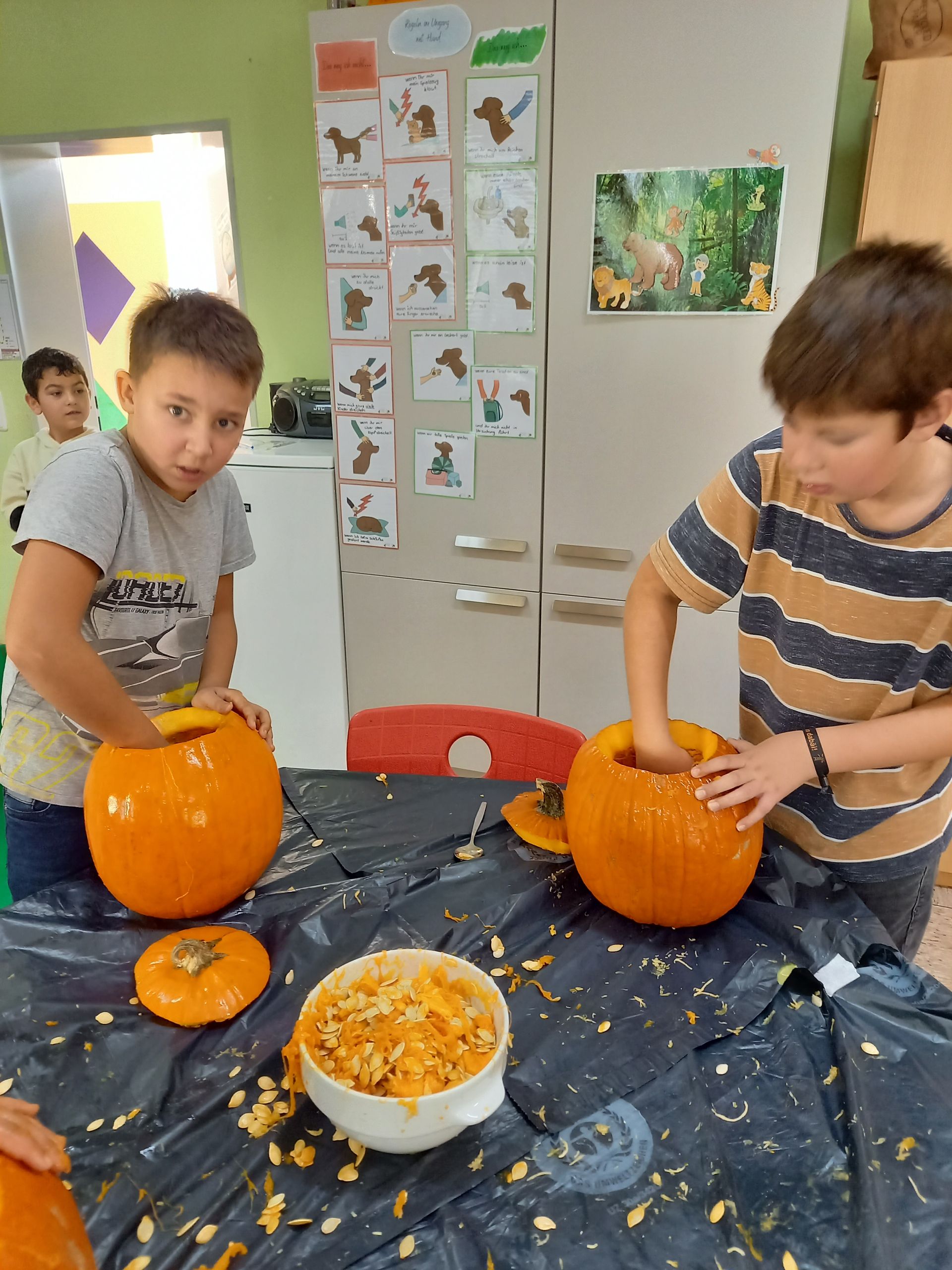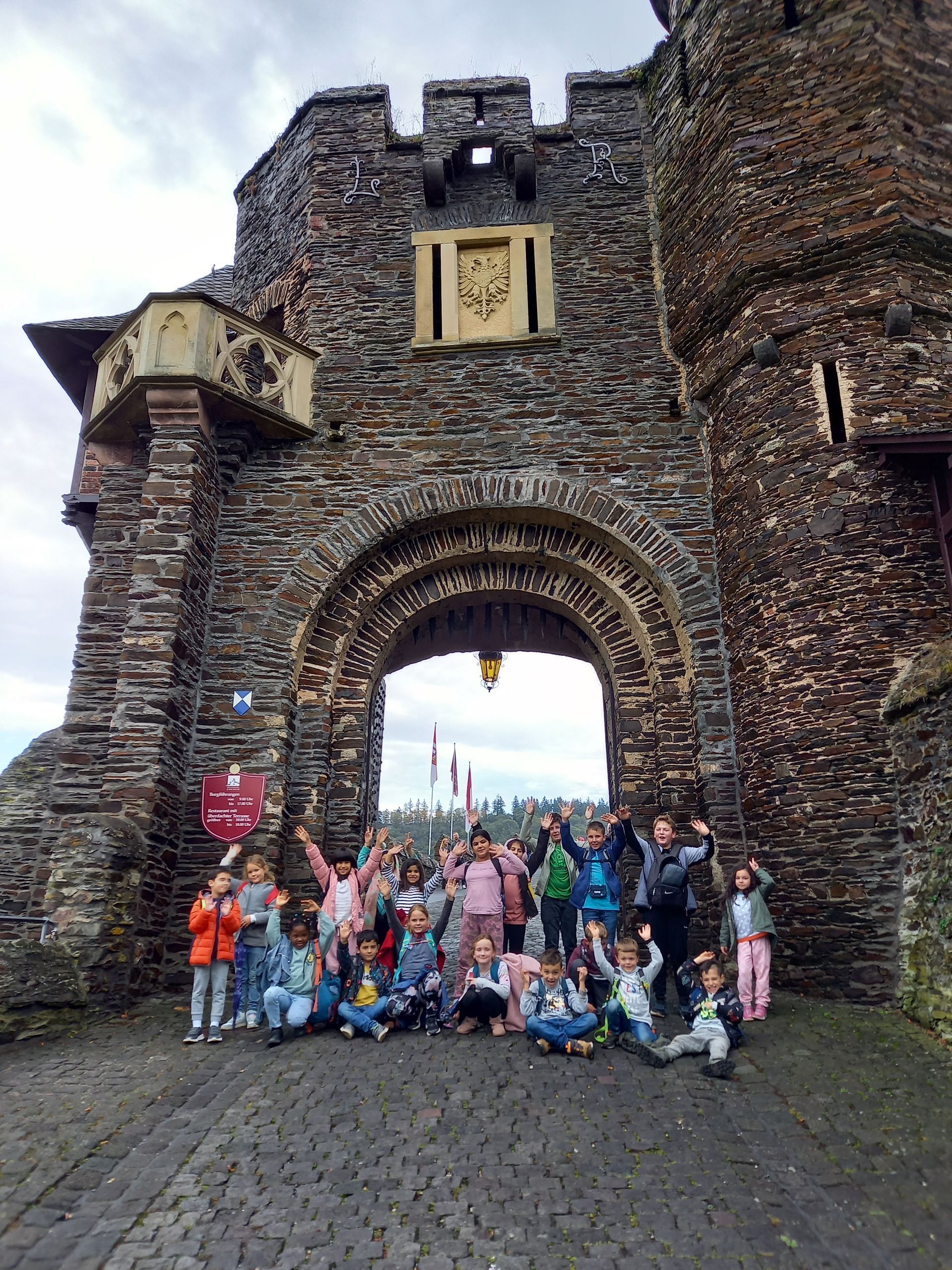 In der ersten Herbstferienwoche 16.10. – 20.10.2023 fand für 23 Grundschulkinder das BilBO Herbstferienprogramm in der Grundschule in Polch statt. Am Montag starteten alle Teilnehmenden mit einem ausgiebigen Frühstück in den Tag. Anschließend wurde die Gruppe von der „Bundesarbeitsgemeinschaft Rettungs- und Hundeführender Vereinigungen (BAG-RHV)“ besucht. Die BAG-RHV verwandelte den Schulhof in einen kleinen Trainingsplatz und zeigte den Kindern, wie die Hunde für Rettungseinsätze ausgebildet werden. Auch die Kinder konnten selbst aktiv werden und in Interaktion mit den Hunden treten aber auch selbst erfahren, was er bedeutet durch einen dunklen Tunnel zu kriechen oder mit einer Seilbahn abgeseilt zu werden. Es war ein tolles Erlebnis für die gesamte Gruppe. Am Dienstag konnten die Kinder herbstliche Fensterdekoration basteln, Gesellschaftsspiele spielen oder sich bei tollen Bewegungsangeboten in der Sporthalle auspowern. Am Nachmittag besuchte die Gruppe bei schönstem Sonnenschein den nahegelegenen Spielplatz. Am Vormittag des dritten Tages stand das ersehnte Kürbisschnitzen auf dem Programm. Mit viel Geduld und Motivation hüllten die Grundschüler und Grundschülerinnen ihre Kürbisse aus und schnitzen tolle Gesichter. Nach dem Mittagessen wurden viele Spiele gespielt und sich in der Turnhalle ausgetobt. Am Donnerstag stand der Ausflug der Woche auf dem Programm. Um halb zehn fuhr der Bus von Polch aus los Richtung Cochem. Schon vom Moselufer aus bewunderten die Kinder die Burg. Nach einer kleinen, aber doch anstrengenden Wanderung erreichte die Gruppe das Ziel. Nachdem das Souvenirgeschäft geplündert wurde, startete die interaktive Führung. Zu Beginn kleideten sich alle Kinder dem Burgflair entsprechend. Anschließend wurde die Burg erkundet. Das Highlight des Tages war der letzte Raum. Hier konnten die Kinder ein Kettenhemd und Teile einer Ritterrüstung anprobieren, ein Spinnrad bedienen und echte Schwerter einmal anfassen. Nach dieser aufregenden und spannenden Führung fuhr die Gruppe um 15:00 Uhr zurück nach Polch. Den letzten Tag verbrachte die Gruppe etwas ruhiger in der Schule. Es war deutlich zu spüren, dass viele Kinder von der abwechslungsreichen Woche müde waren. Daher wurden Kürbisse und Fledermäuse gebastelt, Spiele gespielt, in der Kuschelecke entspannt oder noch einmal in der Sporthalle gespielt. Am Ende waren sich alle Kinder einig, dass es eine tolle Woche war. Viele freuten sich schon auf die zweite Woche und damit auf das Maifelder Herbstferienprogramm. Auch die Verantwortliche Katharina Schweitzer (Schulsozialarbeitern und Leitung des BilBO Projektes an der Grundschule Polch) blickt auf eine tolle Woche zurück und bedanken sich bei den Teamer*innen für ihren Einsatz. Alle Kinder, Teamer*innen und Verantwortlichen freuen sich schon auf die Ferienprogramme im nächsten Jahr.