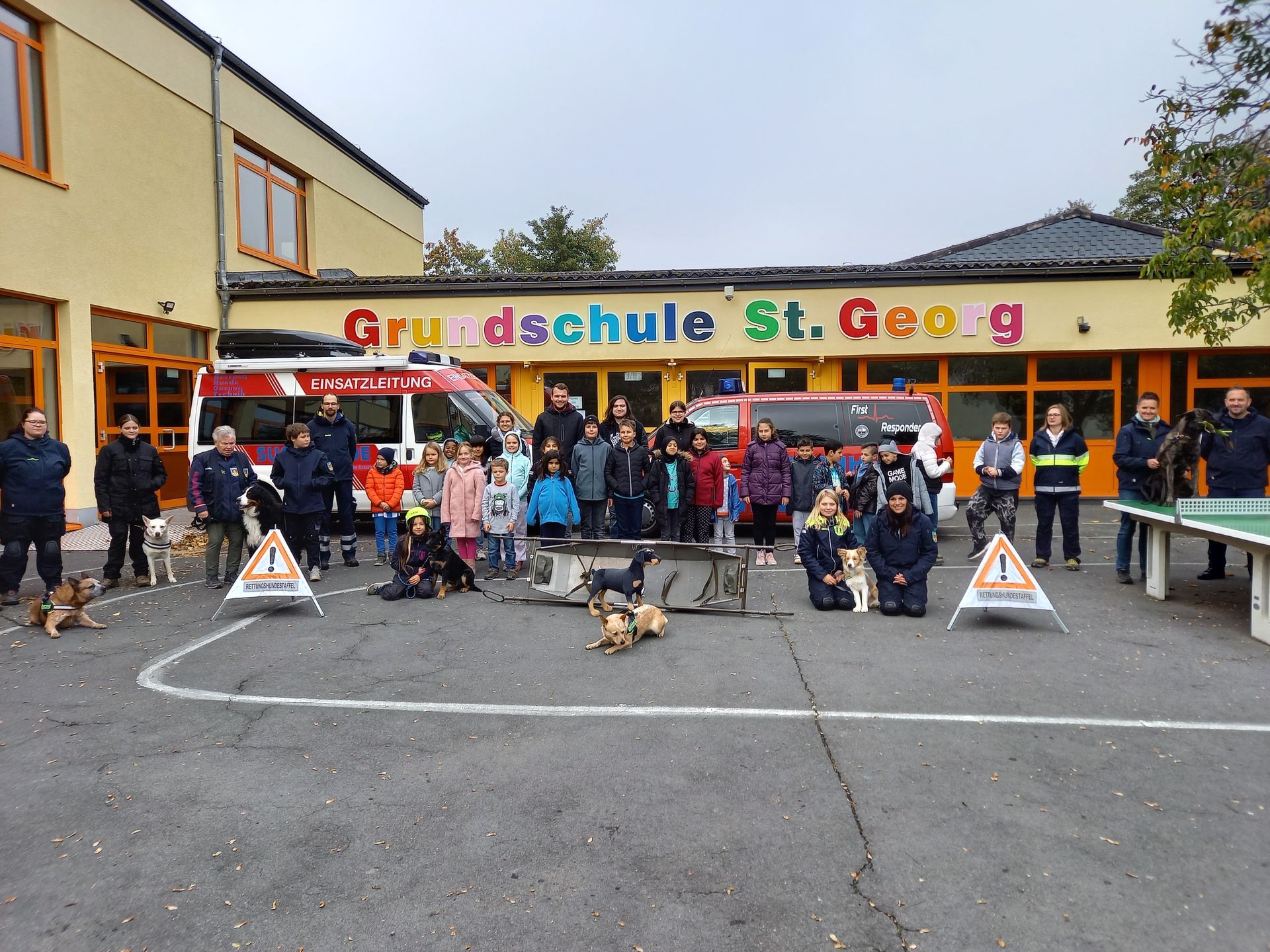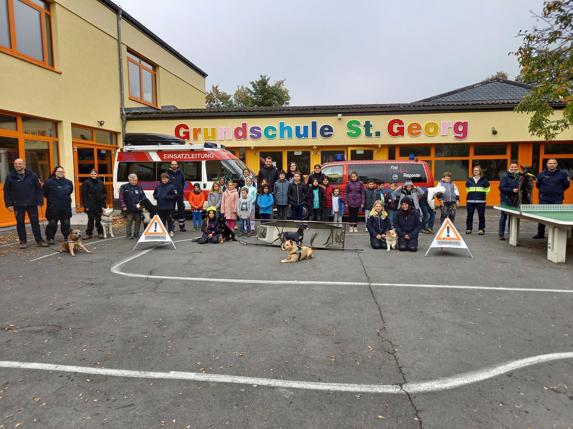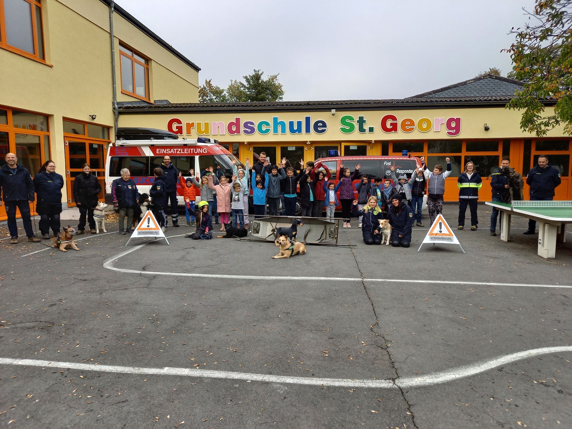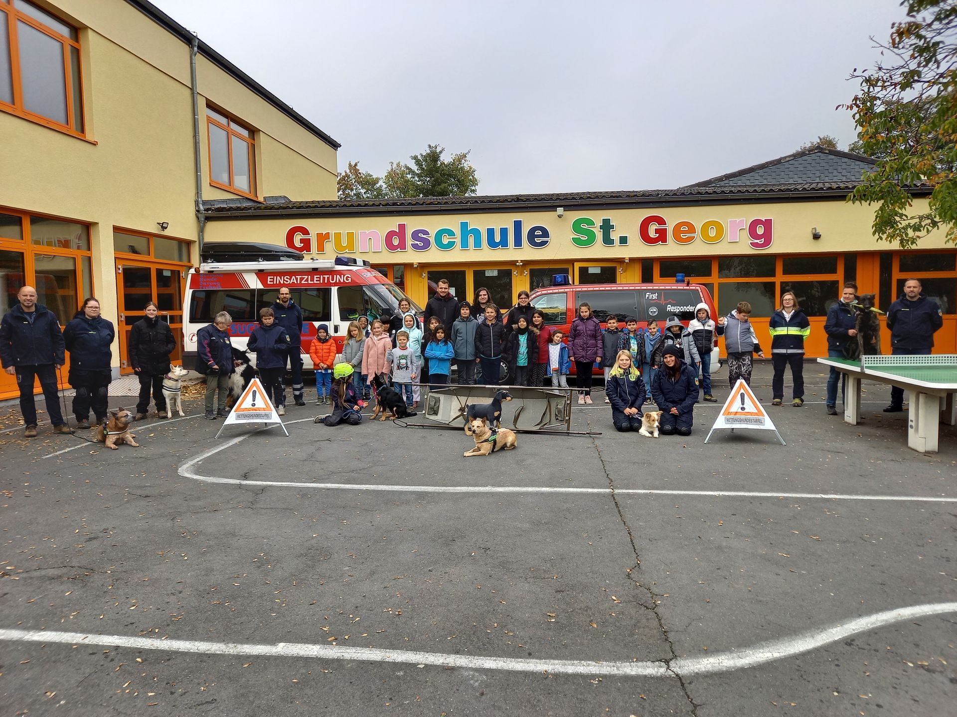 In der ersten Herbstferienwoche 16.10. – 20.10.2023 fand für 23 Grundschulkinder das BilBO Herbstferienprogramm in der Grundschule in Polch statt. Am Montag starteten alle Teilnehmenden mit einem ausgiebigen Frühstück in den Tag. Anschließend wurde die Gruppe von der „Bundesarbeitsgemeinschaft Rettungs- und Hundeführender Vereinigungen (BAG-RHV)“ besucht. Die BAG-RHV verwandelte den Schulhof in einen kleinen Trainingsplatz und zeigte den Kindern, wie die Hunde für Rettungseinsätze ausgebildet werden. Auch die Kinder konnten selbst aktiv werden und in Interaktion mit den Hunden treten aber auch selbst erfahren, was er bedeutet durch einen dunklen Tunnel zu kriechen oder mit einer Seilbahn abgeseilt zu werden. Es war ein tolles Erlebnis für die gesamte Gruppe. Am Dienstag konnten die Kinder herbstliche Fensterdekoration basteln, Gesellschaftsspiele spielen oder sich bei tollen Bewegungsangeboten in der Sporthalle auspowern. Am Nachmittag besuchte die Gruppe bei schönstem Sonnenschein den nahegelegenen Spielplatz. Am Vormittag des dritten Tages stand das ersehnte Kürbisschnitzen auf dem Programm. Mit viel Geduld und Motivation hüllten die Grundschüler und Grundschülerinnen ihre Kürbisse aus und schnitzen tolle Gesichter. Nach dem Mittagessen wurden viele Spiele gespielt und sich in der Turnhalle ausgetobt. Am Donnerstag stand der Ausflug der Woche auf dem Programm. Um halb zehn fuhr der Bus von Polch aus los Richtung Cochem. Schon vom Moselufer aus bewunderten die Kinder die Burg. Nach einer kleinen, aber doch anstrengenden Wanderung erreichte die Gruppe das Ziel. Nachdem das Souvenirgeschäft geplündert wurde, startete die interaktive Führung. Zu Beginn kleideten sich alle Kinder dem Burgflair entsprechend. Anschließend wurde die Burg erkundet. Das Highlight des Tages war der letzte Raum. Hier konnten die Kinder ein Kettenhemd und Teile einer Ritterrüstung anprobieren, ein Spinnrad bedienen und echte Schwerter einmal anfassen. Nach dieser aufregenden und spannenden Führung fuhr die Gruppe um 15:00 Uhr zurück nach Polch. Den letzten Tag verbrachte die Gruppe etwas ruhiger in der Schule. Es war deutlich zu spüren, dass viele Kinder von der abwechslungsreichen Woche müde waren. Daher wurden Kürbisse und Fledermäuse gebastelt, Spiele gespielt, in der Kuschelecke entspannt oder noch einmal in der Sporthalle gespielt. Am Ende waren sich alle Kinder einig, dass es eine tolle Woche war. Viele freuten sich schon auf die zweite Woche und damit auf das Maifelder Herbstferienprogramm. Auch die Verantwortliche Katharina Schweitzer (Schulsozialarbeitern und Leitung des BilBO Projektes an der Grundschule Polch) blickt auf eine tolle Woche zurück und bedanken sich bei den Teamer*innen für ihren Einsatz. Alle Kinder, Teamer*innen und Verantwortlichen freuen sich schon auf die Ferienprogramme im nächsten Jahr.