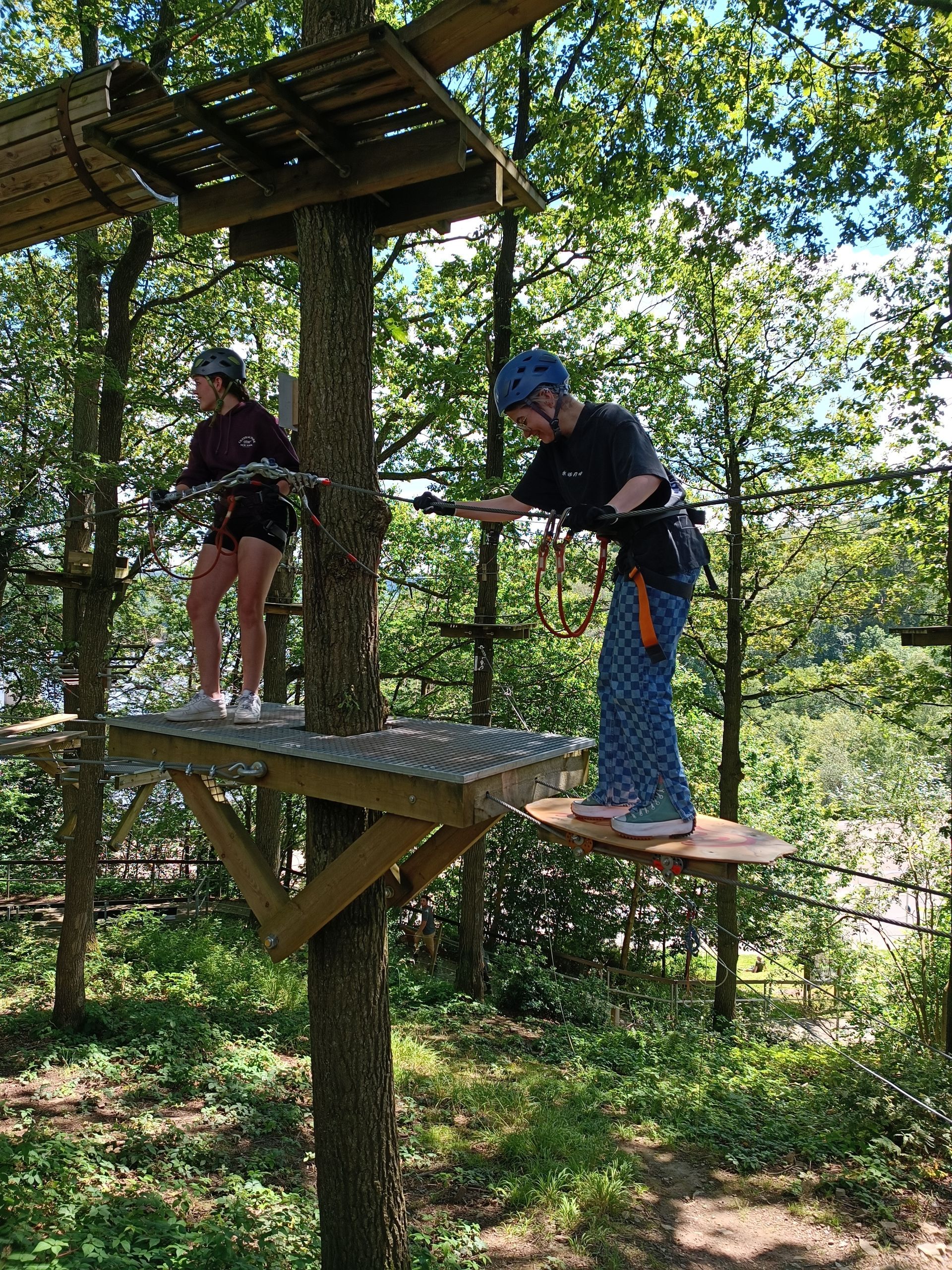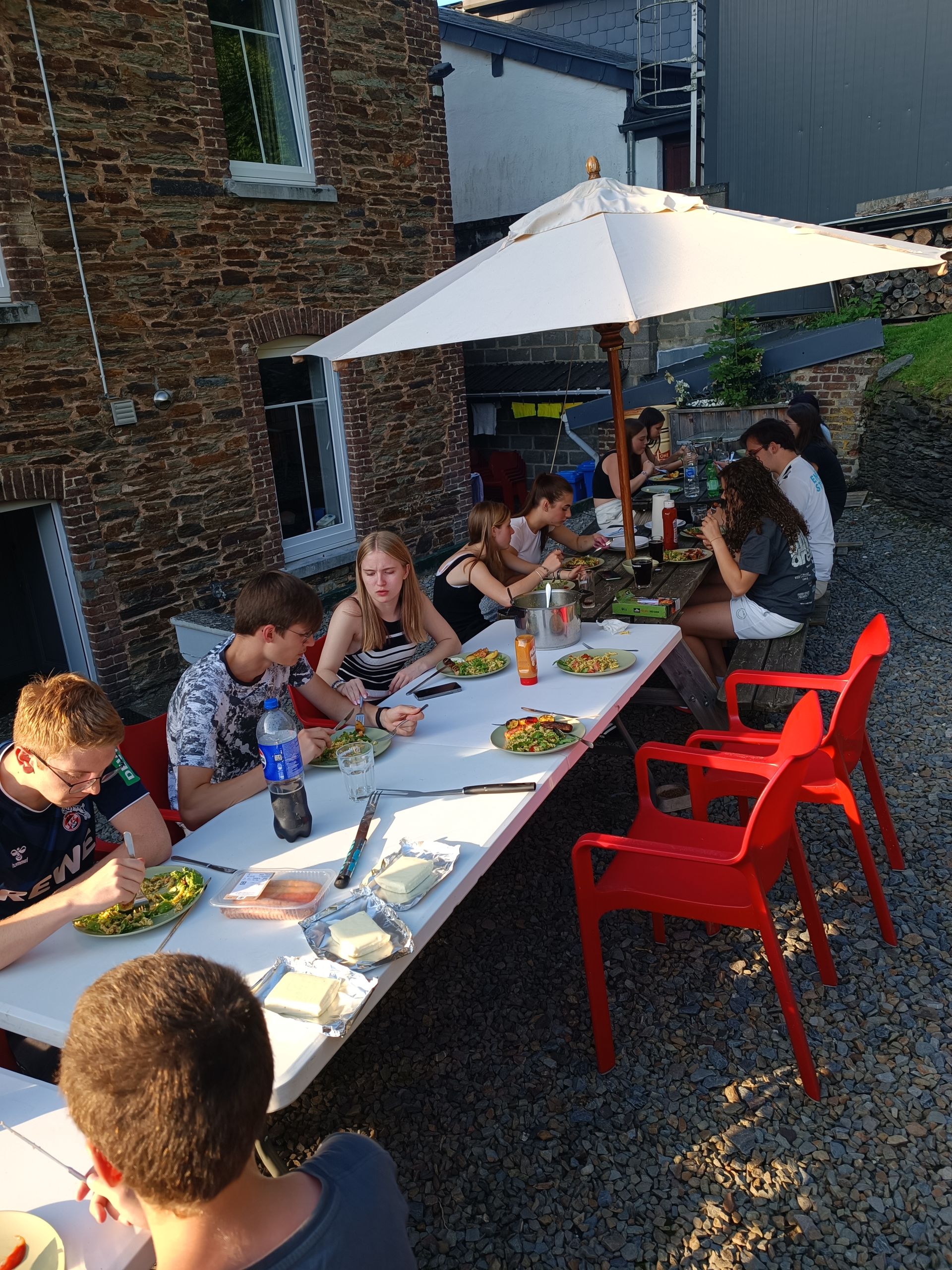 Dieses Jahr ging es für die achtzehn Teilnehmenden erneut nach Belgien, genauer gesagt nach La Roche en Ardenne. Das süße Dorf im Südosten Belgiens bezaubert mit einem einmaligen Charme und einer urigen Innenstadt in der man schlendern, speisen und einkaufen kann. Aber nicht nur das tolle Haus und die direkte Umgebung machten die Fahrt zu einem vollen Erfolg. Auch die zahlreichen Ausflüge waren ein Highlight. Sportlich wurde es beim Besuch eines Kletterparks sowie einer erfrischenden Kanutour auf der Ourthe. Darüber hinaus durfte neben ausreichend Zeit zum Entspannen und einem damit einhergehenden Besuch des Strandes in Maboge ein ausgiebiger Shoppingtag nicht fehlen. Da nahm man die einstündige Fahrt nach Lüttich gerne in Kauf, um im Shopping-Center einzukaufen, in der Stadt zu schlendern und Eis zu essen.