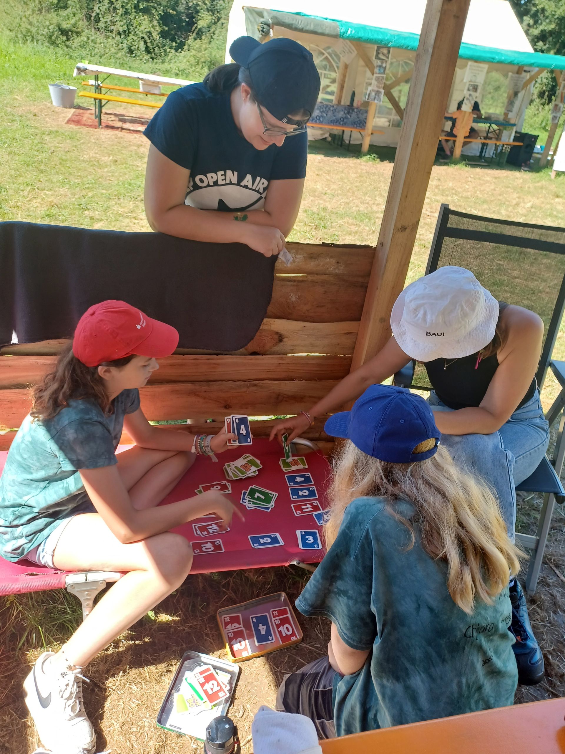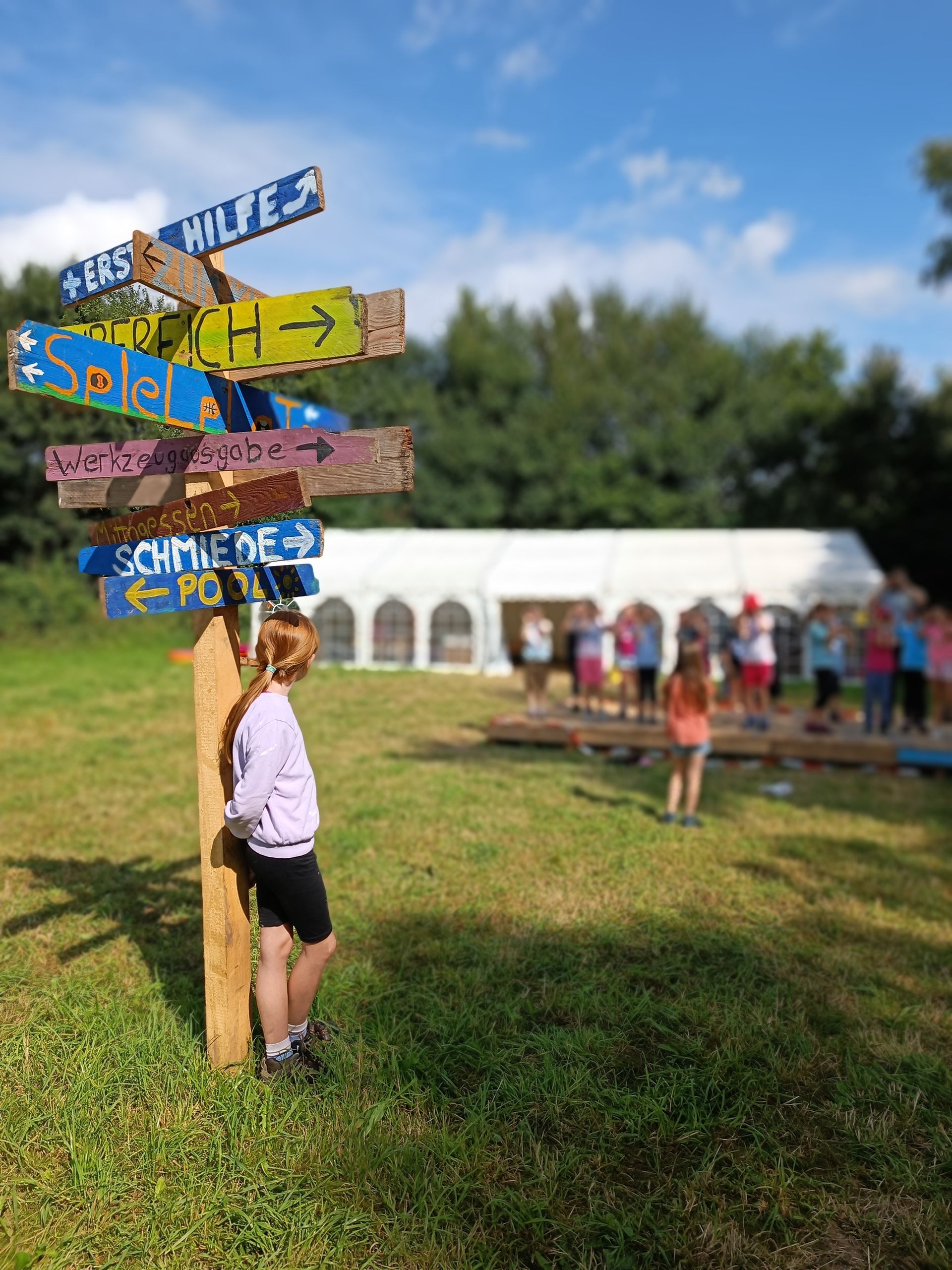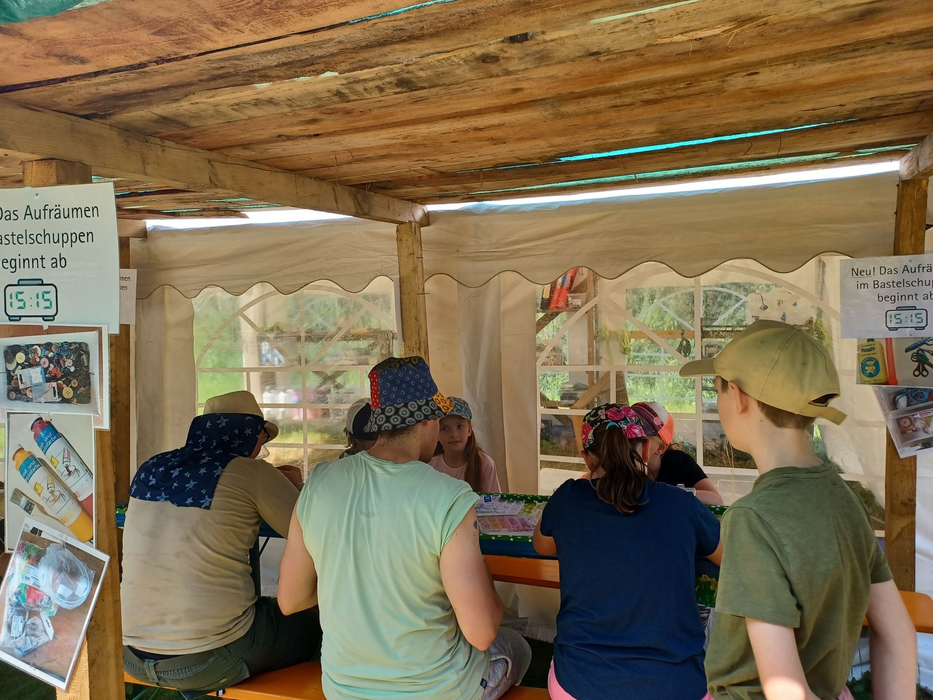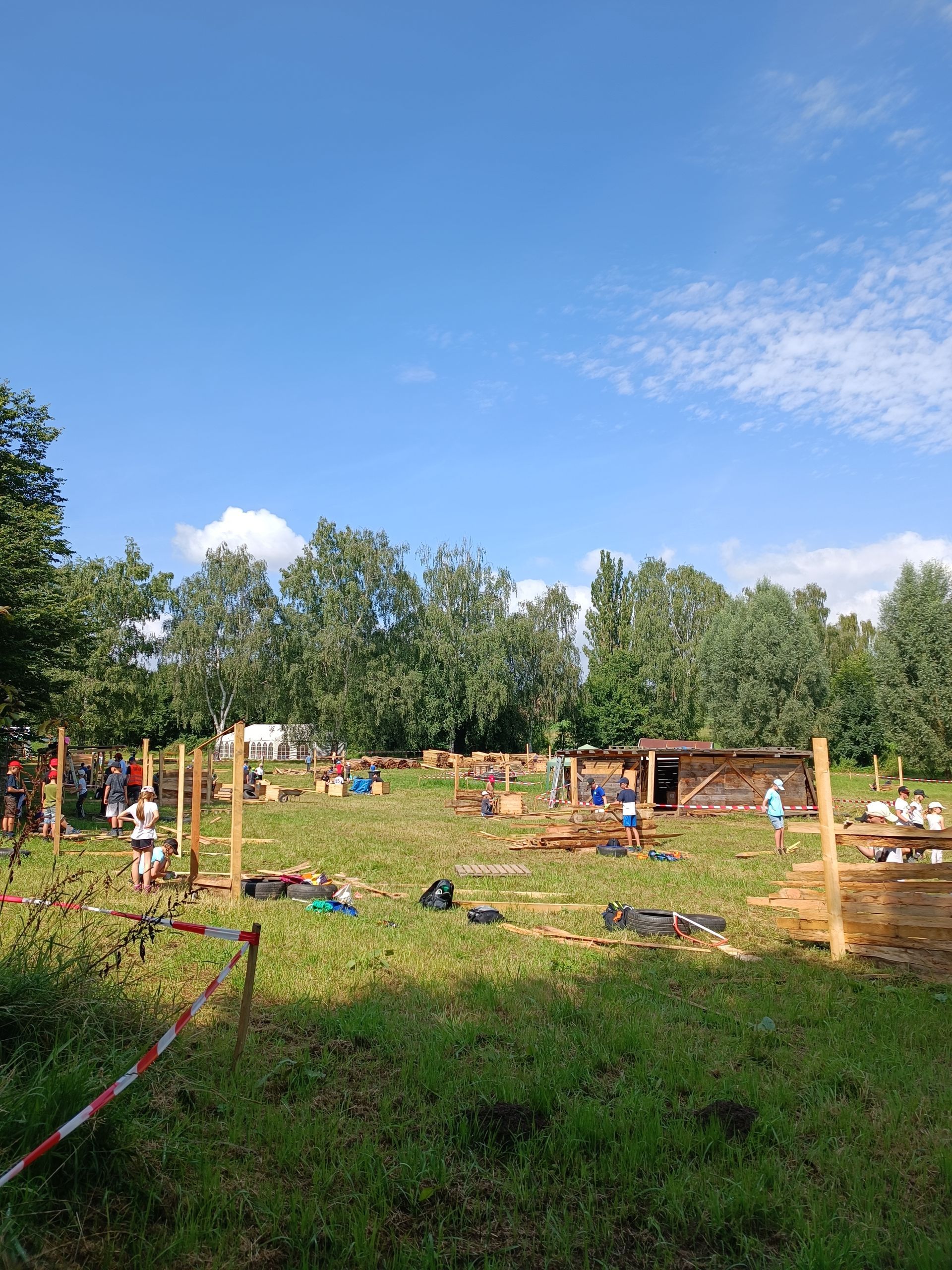 Während der gesamten Zeit auf dem Bauspielplatz, kümmerte sich das Teamerteam mit viel Hingabe, Freude, Einfühlungsvermögen und Engagement um alle Bedürfnisse der Kinder und unterstützte sie in kniffligen Situationen. Bei den Bauprojekten lag die Verantwortung für Planung und Verwirklichung bei den Kindern, die sich untereinander halfen, gemeinsam Strategien entwickelten und ihre individuellen Ideen umsetzen konnten, z. B. wie die benötigten Materialien wie Balken, Bretter oder Nägel transportiert werden konnten. Auch geeignete Werkzeuge wie Hammer oder Säge, wählten sie eigenständig aus.