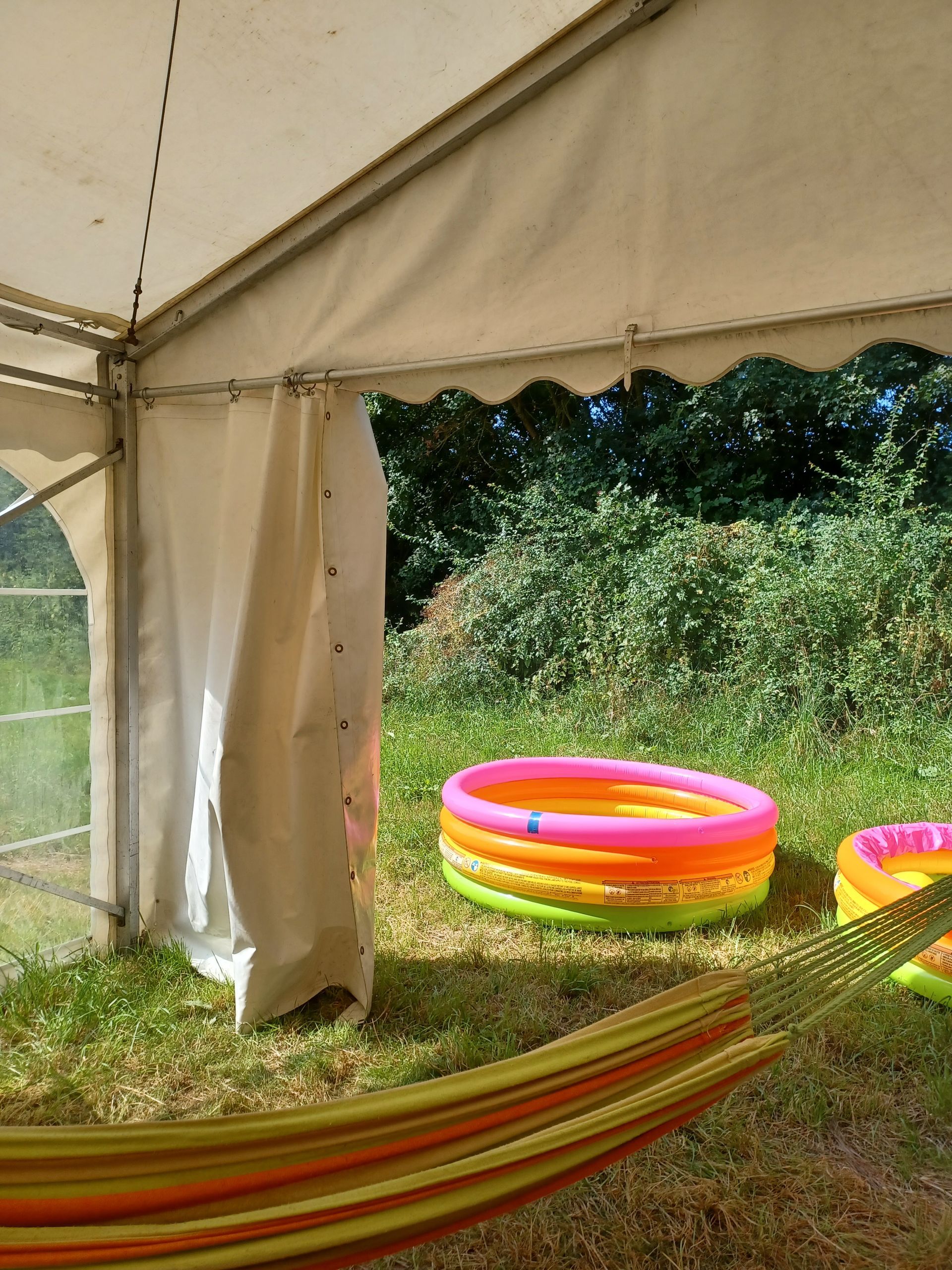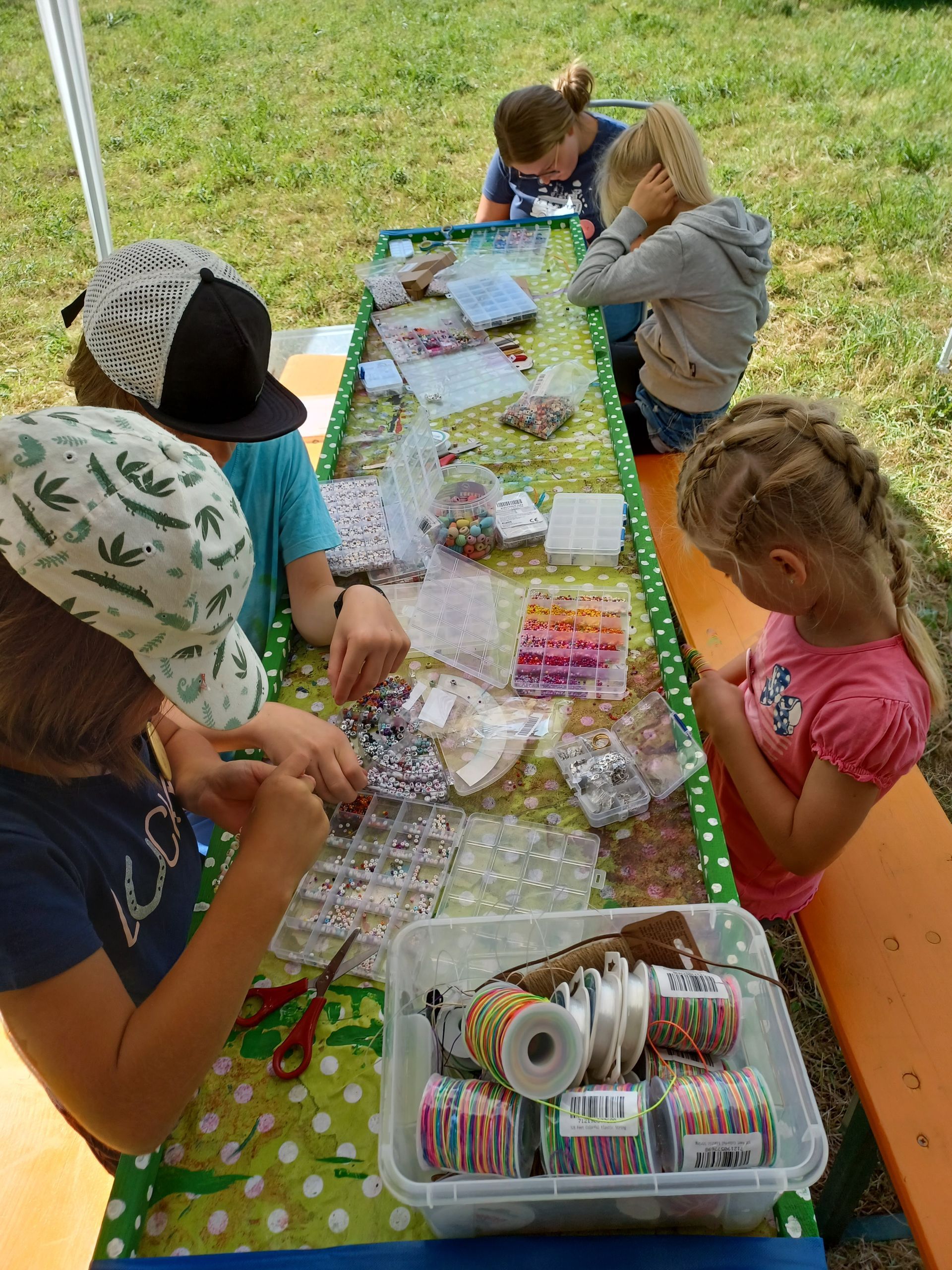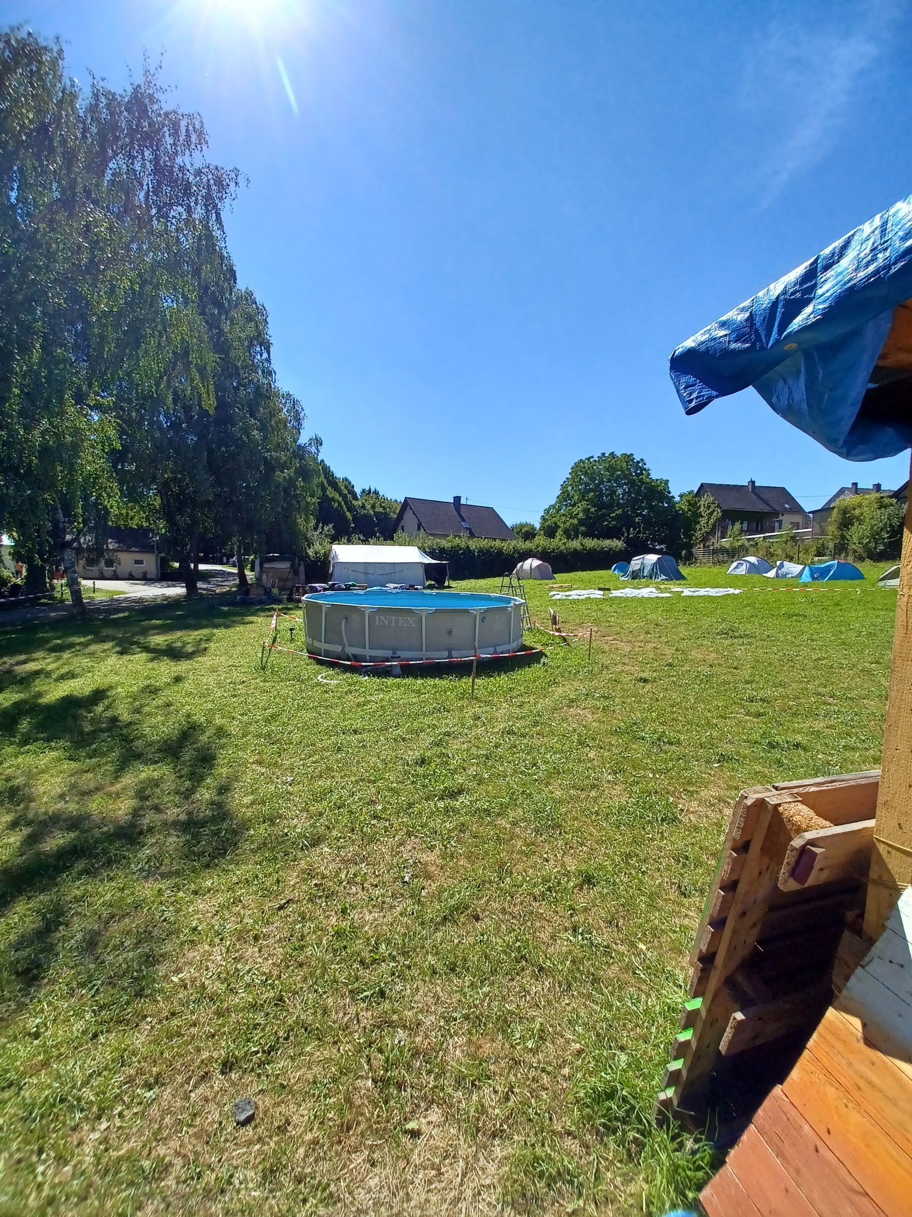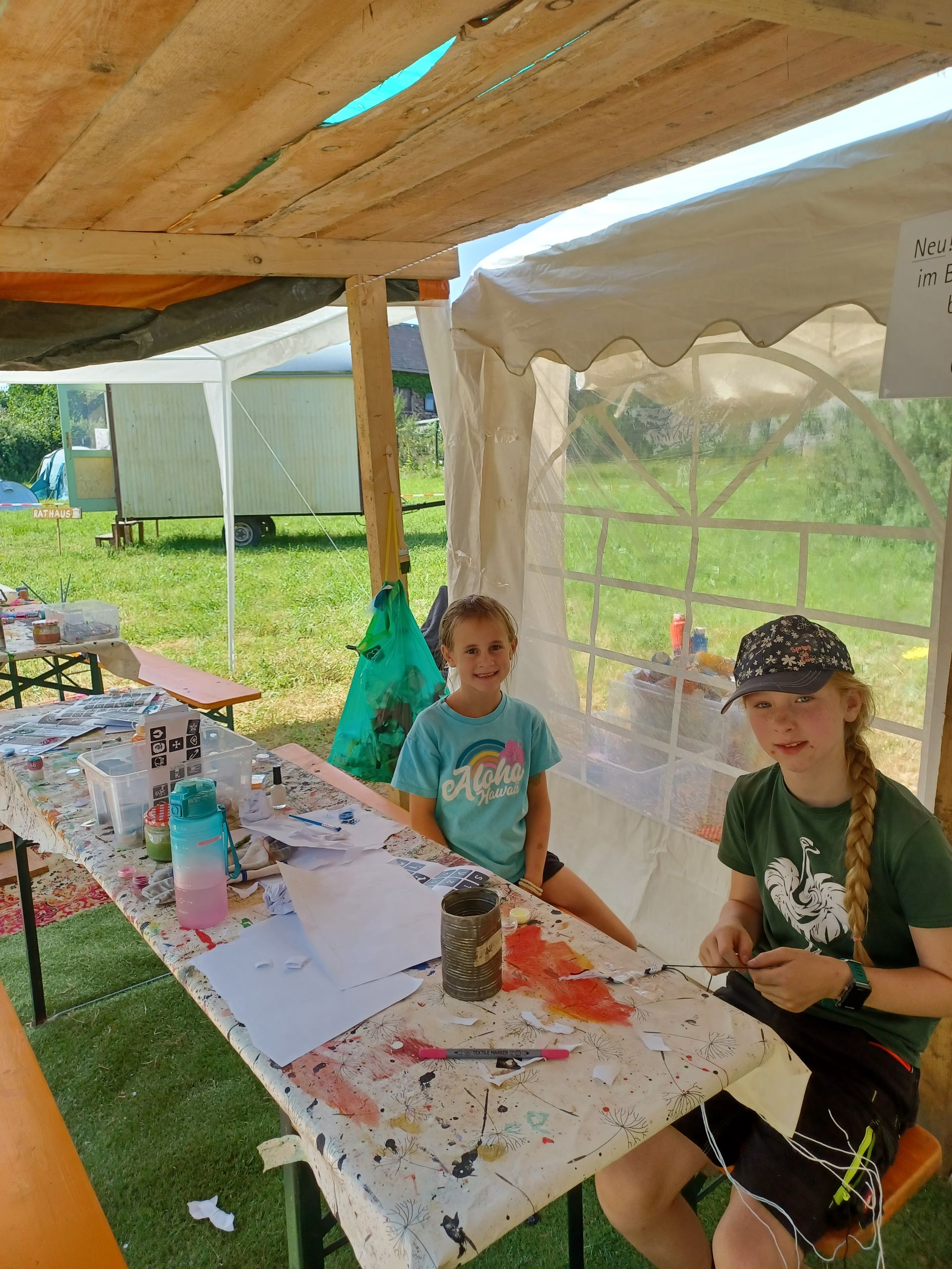 Unter der Leitung der Jugendkoordinatorinnen Katharina Machno und Jana Eulenberger, der drei Bau(i)experten Felix Frieb-Preis, Niklas Wey und Luca Wissen sowie der Unterstützung von insgesamt 32 Teamern, entstand binnen zwei Wochen ein tolles, einzigartiges Dorf aus selbstgebauten Holzhütten. Während dieser Zeit entwickelte sich auf dem BAUi eine beeindruckende Dynamik. Neben den altbewährten Vierecks-Hütten, entstanden zusätzlich Brücken, Schaukeln und eine große Rutsche. Täglich wurde fleißig gehämmert, gesägt und dekoriert. Jedes Häuschen war ein Unikat und ein einzigartiges Hüttendorf erwachte. Bald darauf öffneten auch schon die ersten Geschäfte. Neben dem ein oder anderen Kiosk gab es beispielsweise auch Lotterien. Mit den „BAUi-Talern“ wurde in den Geschäften bezahlt. Es entstand ein richtiges Dorfleben, welches die Kinder kreativ und selbstständig, mit vielen tollen Ideen gestaltet haben. Wie auch in den Vorjahren fand der Bauspielplatz auf einem großen Gelände am Dorfgemeinschaftshaus in Münstermaifeld-Mettenich statt. Neben dem großen Bauplatz, auf dem das Hüttendorf entstand und dessen Dorfmitte mit Feuerstelle zum Stockbrotbacken und S‘mores machen einlud, gab es noch eine weitere Wiese, auf der nicht gebaut, sondern nur gespielt wurde. Im „Bastelschuppen“ konnten die Kinder ihrer Kreativität bei verschiedensten Angeboten freien Lauf lassen, z. B. beim Gipsen, Batiken, Armbänder knüpfen oder Töpfe bemalen. Sehr beliebt waren auch die Bühne mit Verkleidungskiste, die Poolnudelarena, der „Chill-Out-Bereich“ und der Pool, den die Kinder sehr gerne zur Abkühlung nutzten.