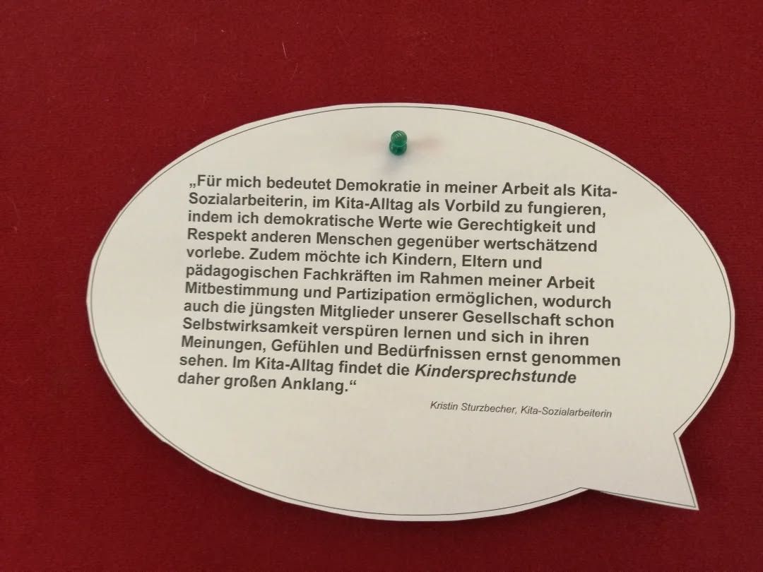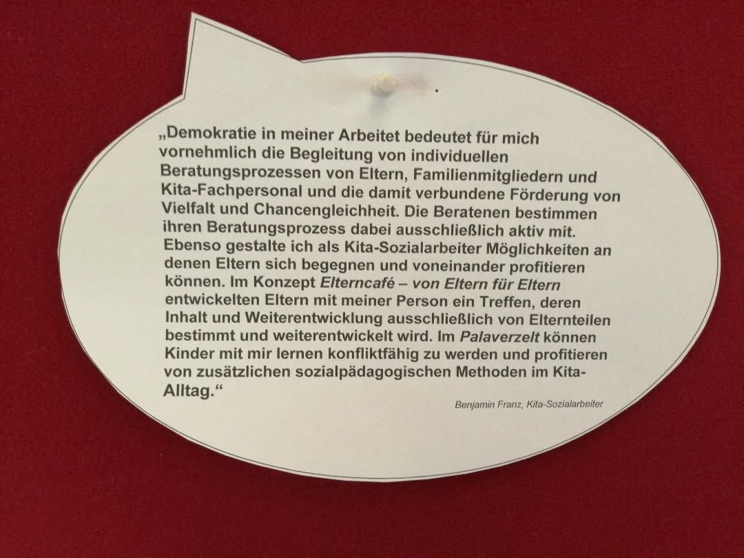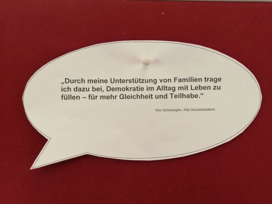 Neben den Mitmachaktionen stellten die in Ochtendung tätigen Sozialarbeiter:innen auch ihre vielfältige Arbeit vor. Sie zeigten auf, wie sie im Alltag – ob in Schule oder Kita – demokratische Prinzipien wie Mitbestimmung, Teilhabe und respektvollen Umgang vermitteln und fördern.