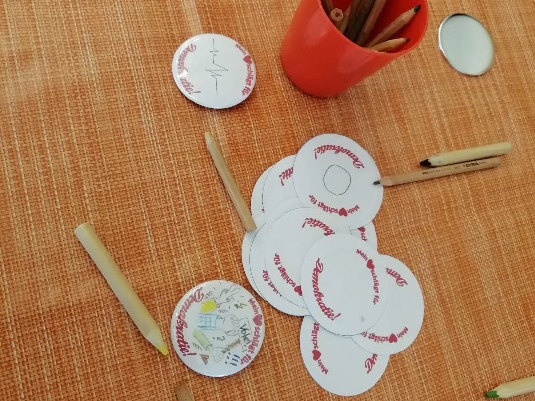 Unter dem Motto „Mein Herz schlägt für Demokratie!“ konnten Besucher:innen eigene Buttons gestalten und so ein sichtbares Zeichen für demokratische Werte setzen. Darüber hinaus lud eine Pinnwand mit dem Satz „Demokratie liegt mir am Herzen, weil...“ zum Nachdenken und Mitgestalten ein. Zahlreiche Kinder, Jugendliche und Erwachsene nutzten die Gelegenheit, ihre Gedanken zu teilen und zu zeigen, was ihnen Demokratie bedeutet.