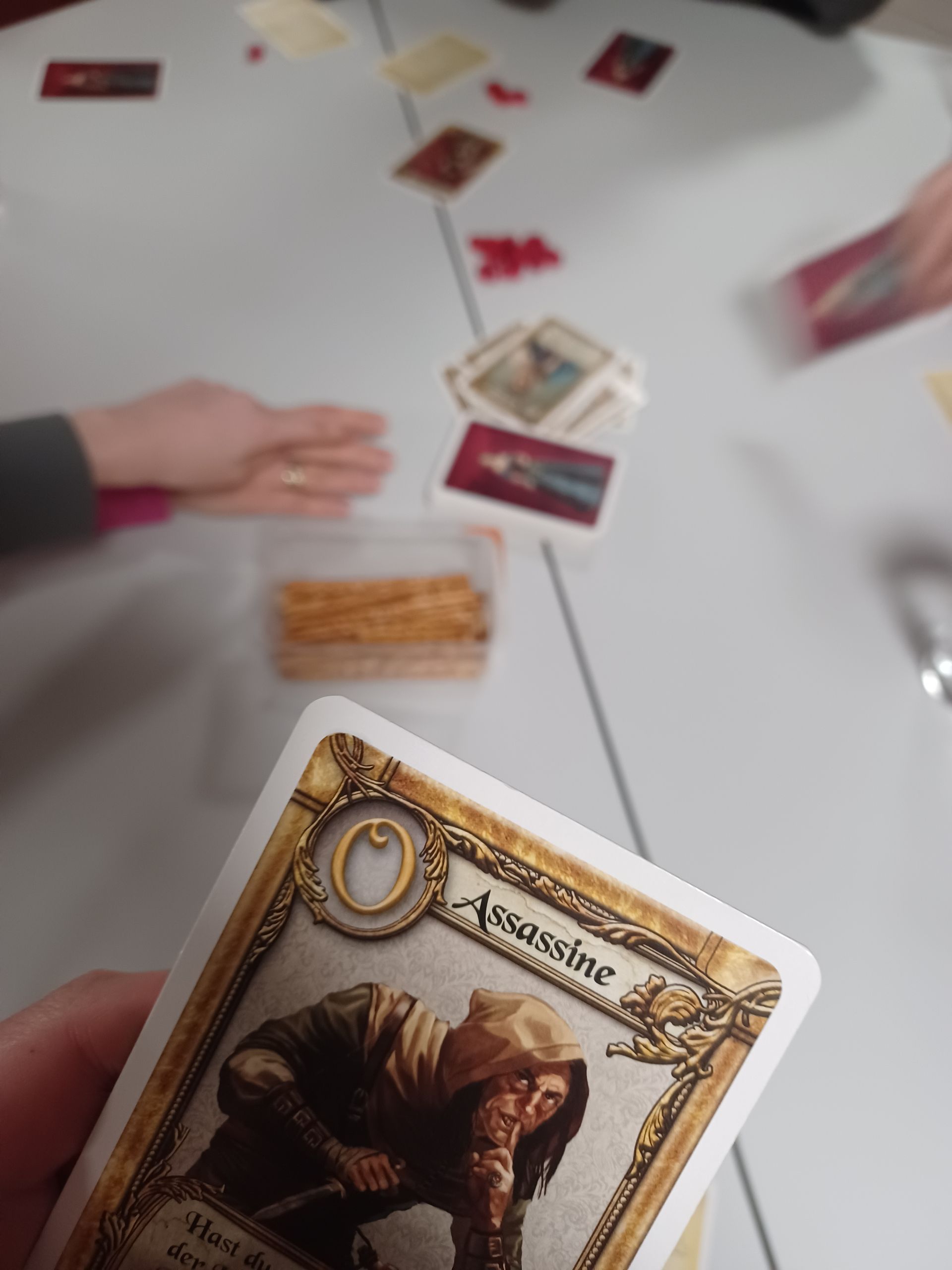 Trotz der großen Gruppe entschieden sich die Spielenden für gemeinschaftliche Spiele. So wurde der Abend mit dem Spiel „Love Letters“ eröffnet, einem Kartenspiel, bei dem um die Gunst und das Herz der Prinzessin gekämpft wird und dabei Nebenbuhler gnadenlos ausgeschalten werden müssen. Um Haaresbreite konnte die jüngste Spielerin des Abends (14 Jahre) das Spiel für sich entscheiden. Mit großem Spaß am gemeinsamen Spielen entschloss sich die Gruppe auch beim zweiten Spiel, „Codenames“ (Spiel des Jahres 2016), für ein Gruppenspiel. Zum Abschluss des Abends wurde mit „Colt Express“ ein weiteres Spiel des Jahres gewählt, bei dem jeder für sich alleine kämpft und als Bandit oder Banditin des Wilden Westens einen Zug ausrauben muss. Die Atmosphäre an diesem Abend war stets von Begeisterung und freudiger Spannung geprägt.