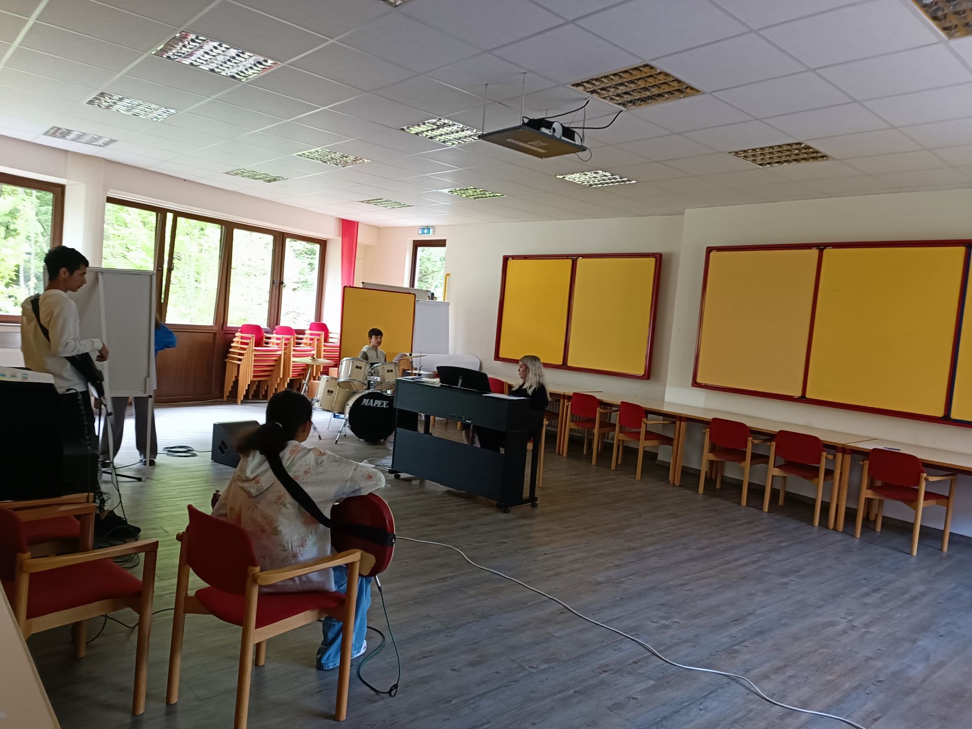 Nach drei intensiven Tagen voller Kreativität, Schweiß und unermüdlicher Proben stand der letzte Tag im Zeichen der Präsentation. Was zuvor in den Köpfen und Händen der Jugendlichen entstanden war, wurde nun mit Stolz und Freude der Welt präsentiert. Jeder Ton, jedes Stück war nicht nur das Ergebnis harter Arbeit, sondern auch ein lebendiges Zeugnis der Leidenschaft und des Muts, sich der Musik hinzugeben. Das begeisterte Publikum – ihre Mitstreiter, die Dozierenden und die Organisatoren – gab ein durchweg positives Feedback, das die Jugendlichen mit Glück und Stolz erfüllte.