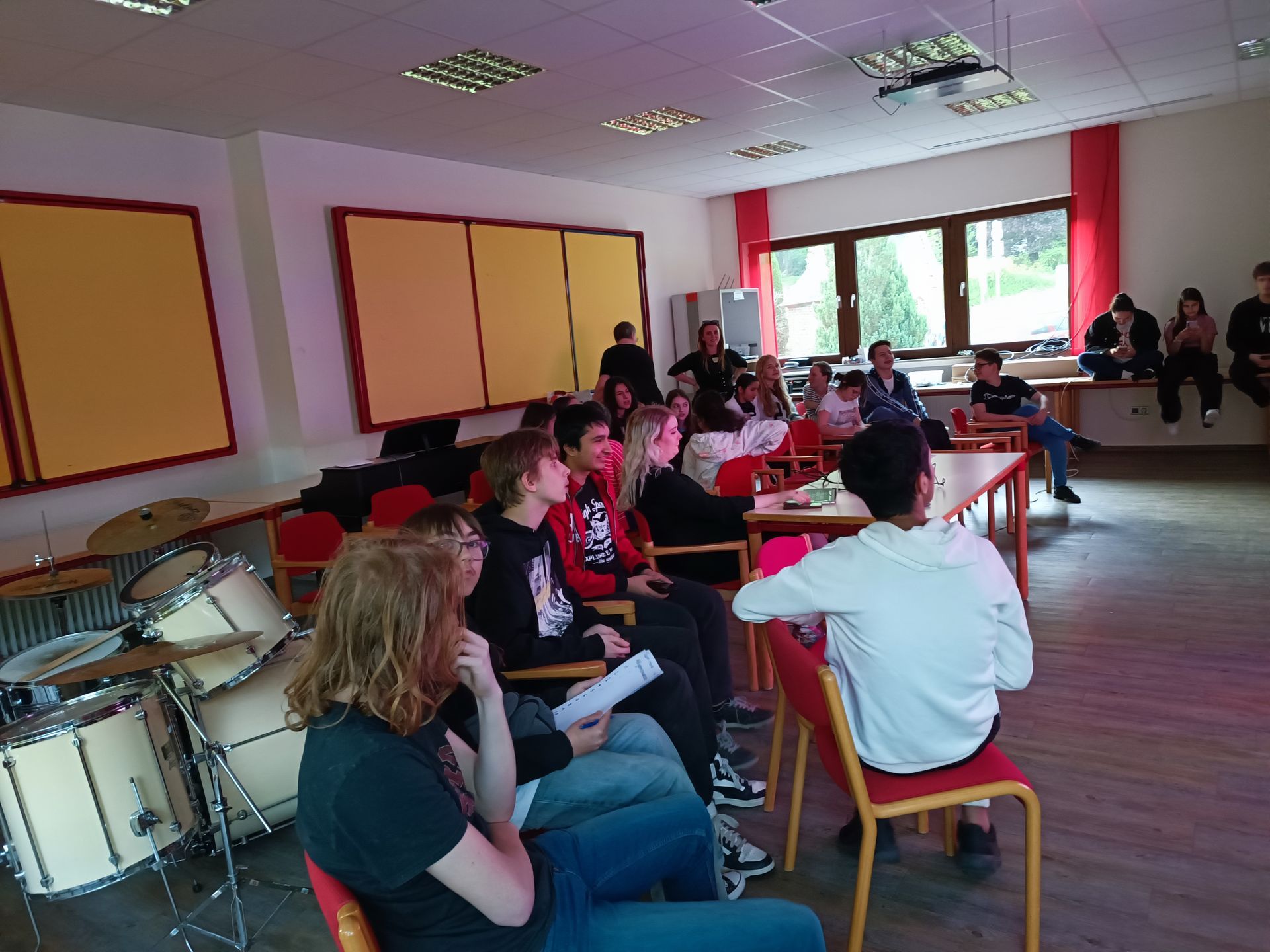 Zum Abschluss des ersten gemeinsamen Tages gab es für die Jugendlichen noch die Möglichkeit, an einem unterhaltsamen Abendprogramm teilzunehmen: Bei einem spannenden Musik-Quiz mit Miranda stellten die Jugendlichen ihr Wissen unter Beweis, bevor der gemeinsame Filmabend mit der Kultkomödie „School of Rock“ auf der großen Leinwand für Begeisterung sorgte.