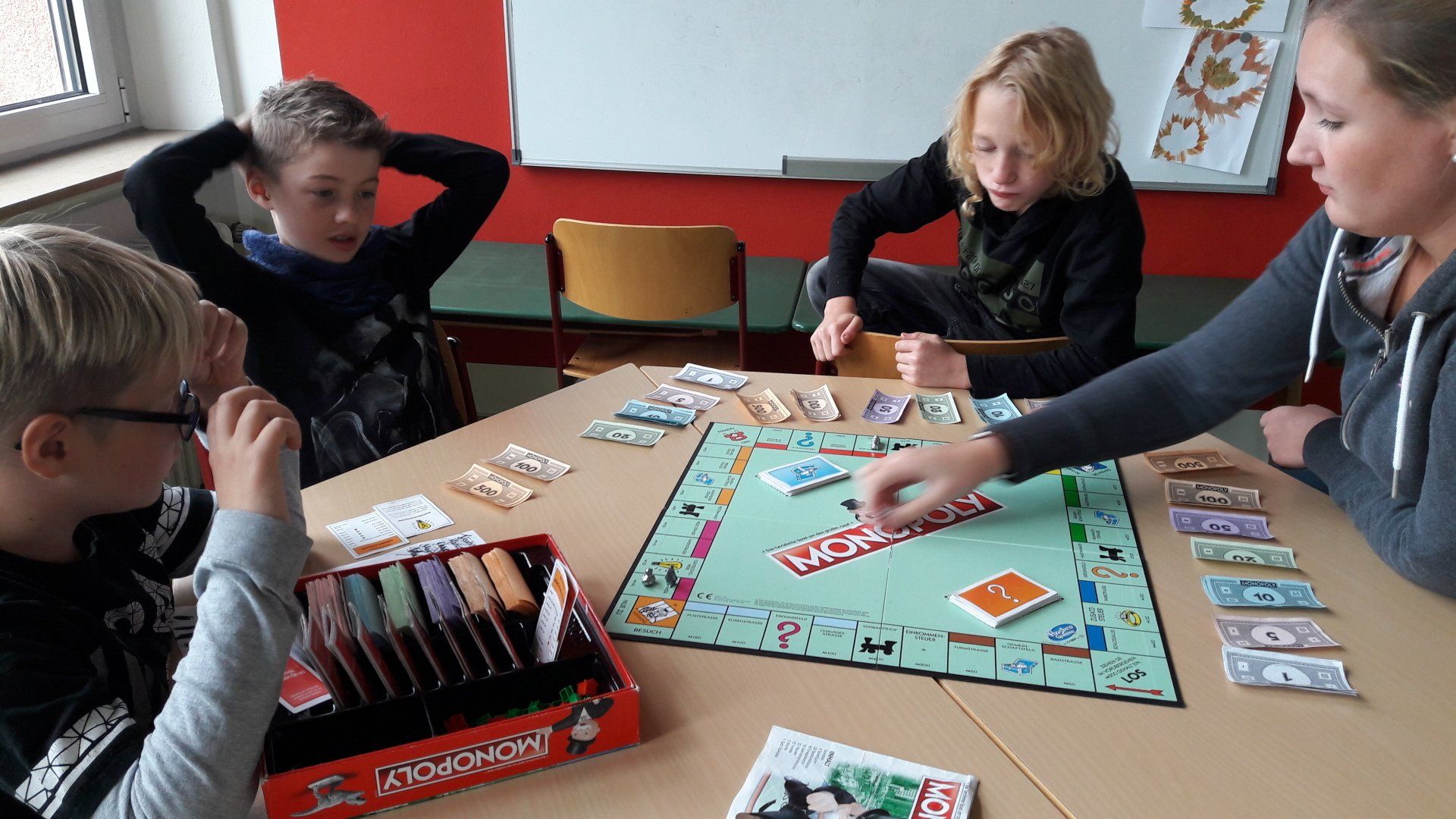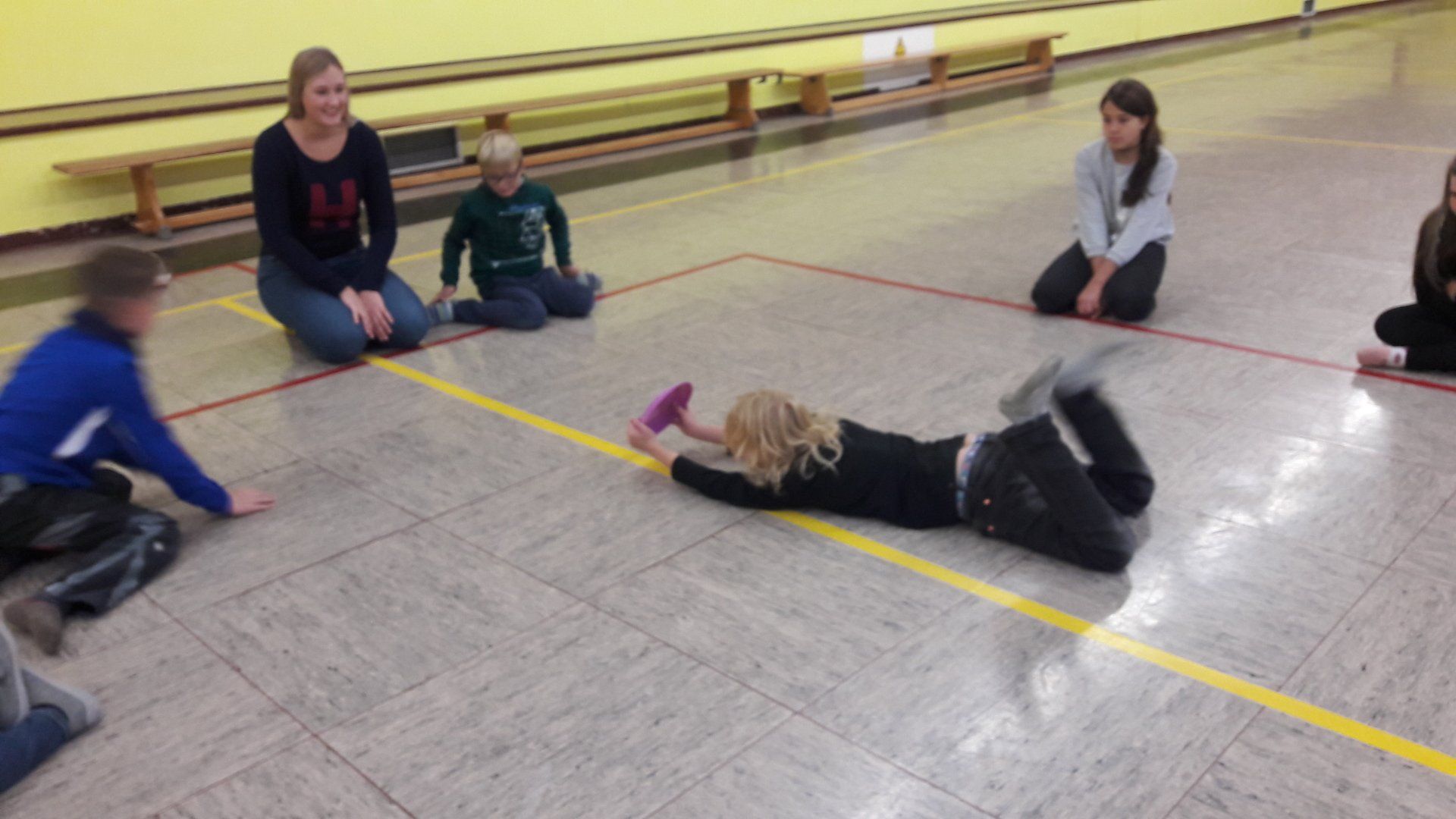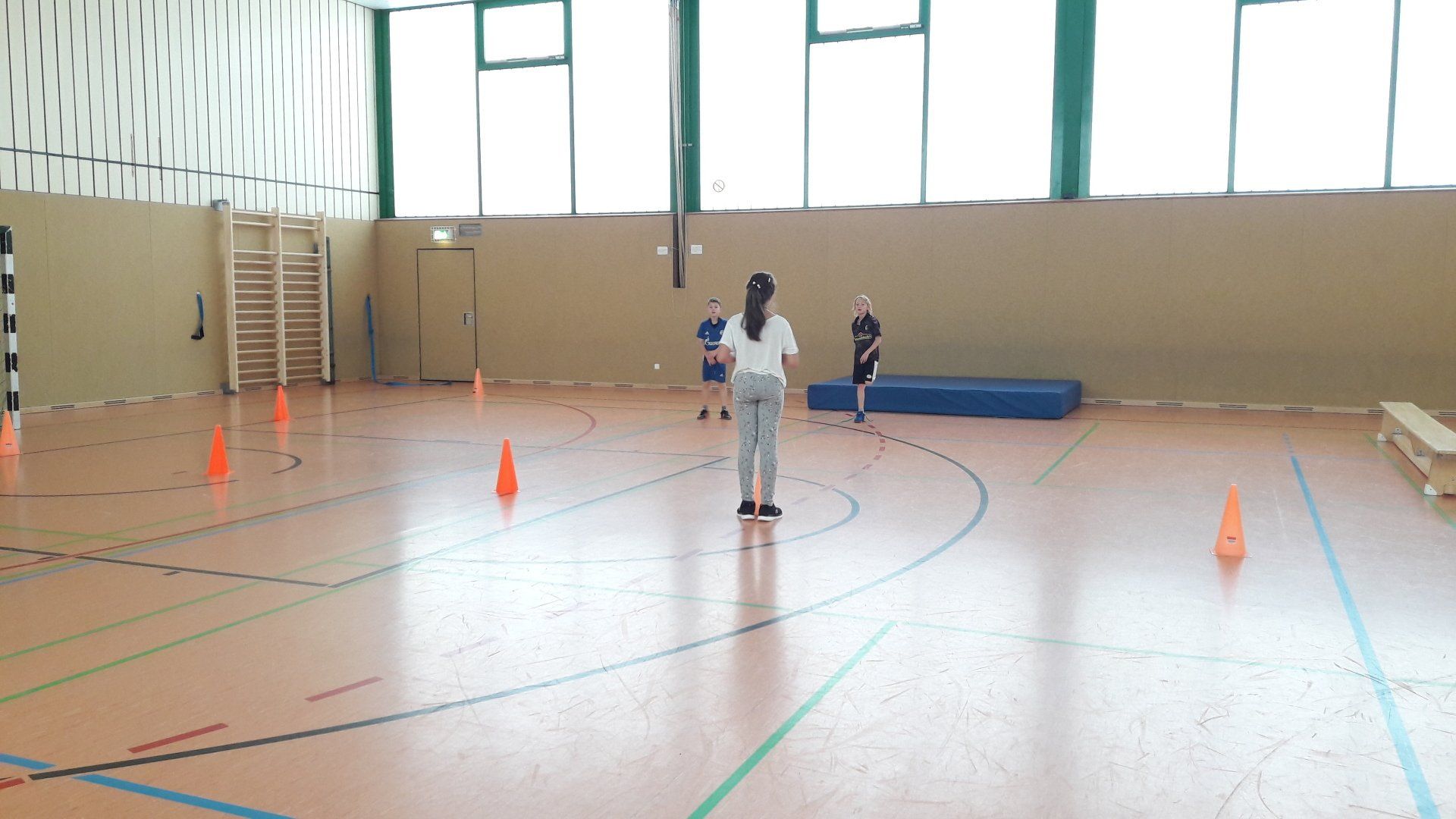 Um dem Bewegungsdrang der Kinder, trotz des ungemütlichen Wetters, gerecht zu werden, verbrachte die Gruppe auch viel Zeit in der Turnhalle, wo sie gemeinsame Bewegungsspiele spielte und verschiedene Sportarten ausprobierte.