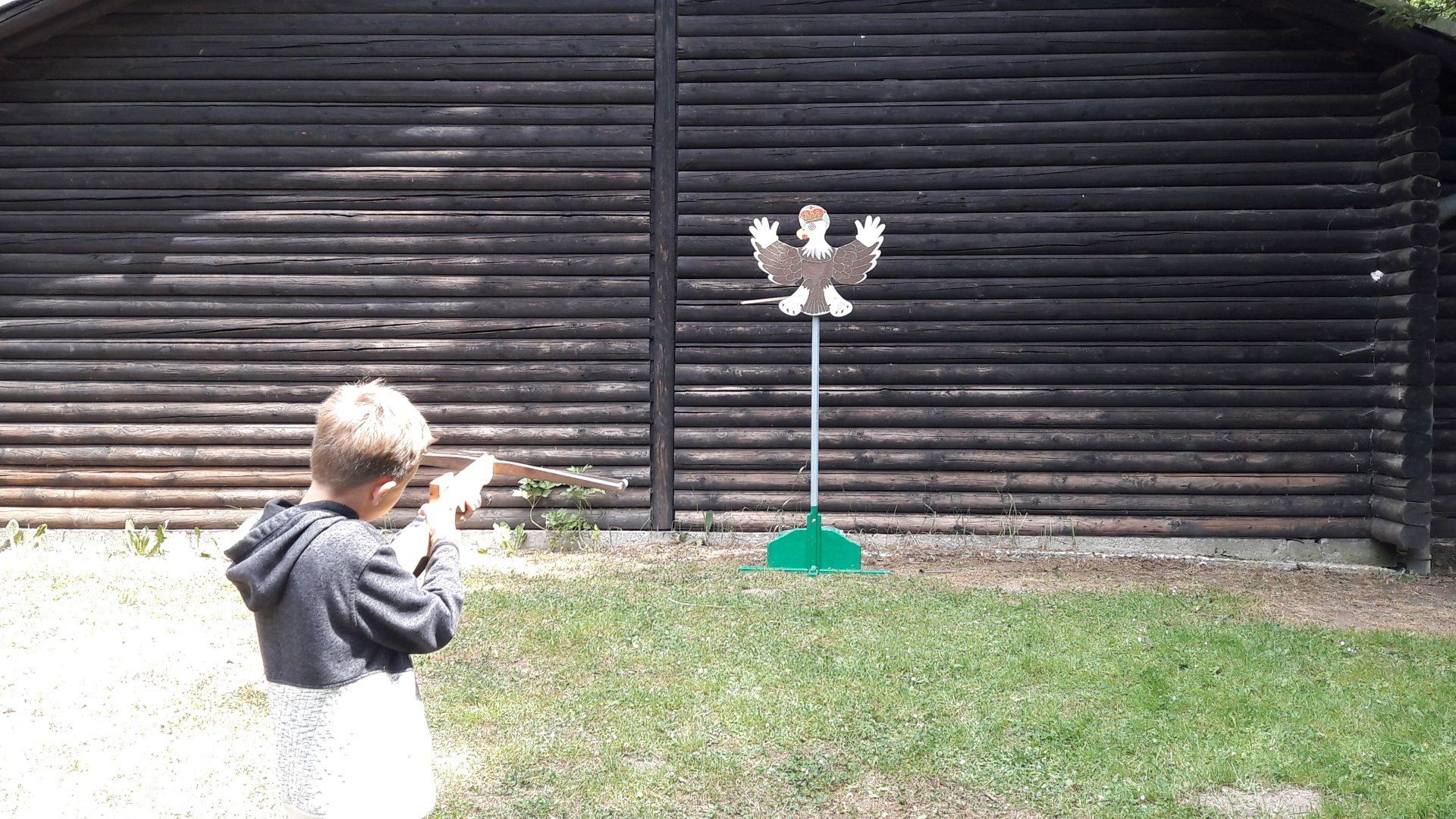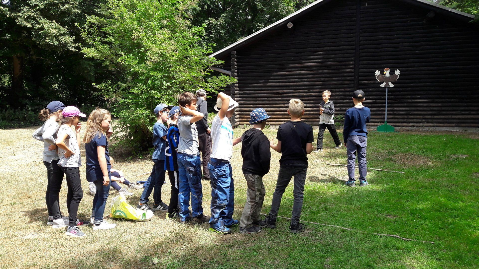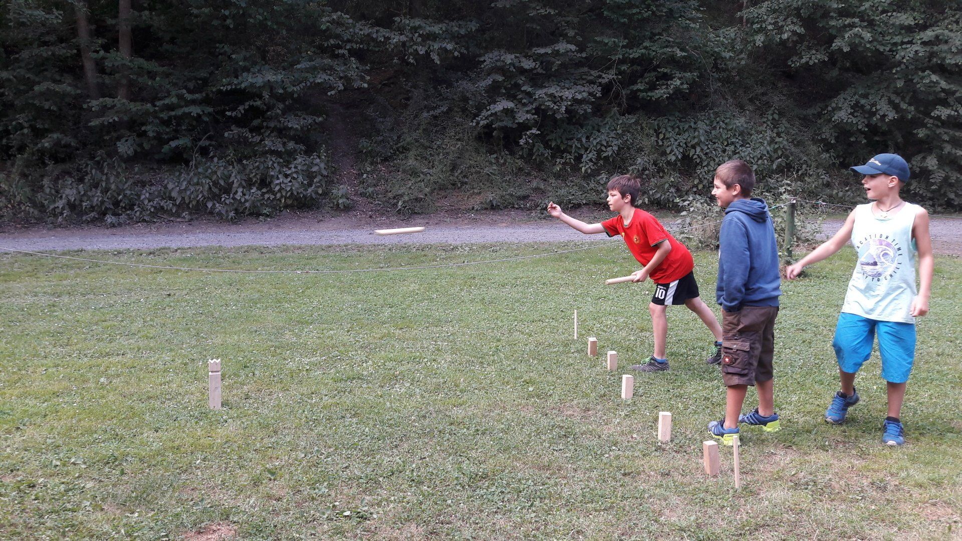 Darüber hinaus fand jede Woche eine kleine Wanderung zur Grillhütte in Ochtendung statt. Der Weg wurde dabei unterschiedlich gestaltet, sodass die Kinder durch verschiedenste Aufgaben und Spiele ihre Umgebung und die Natur ganz bewusst wahrnehmen konnten. Zum krönenden Abschluss wurde dann an der Grillhütte gespielt, gebadet und gegrillt. Besonders viel Spaß hatten die Kinder hier beim Bogen- und Armbrustschießen.