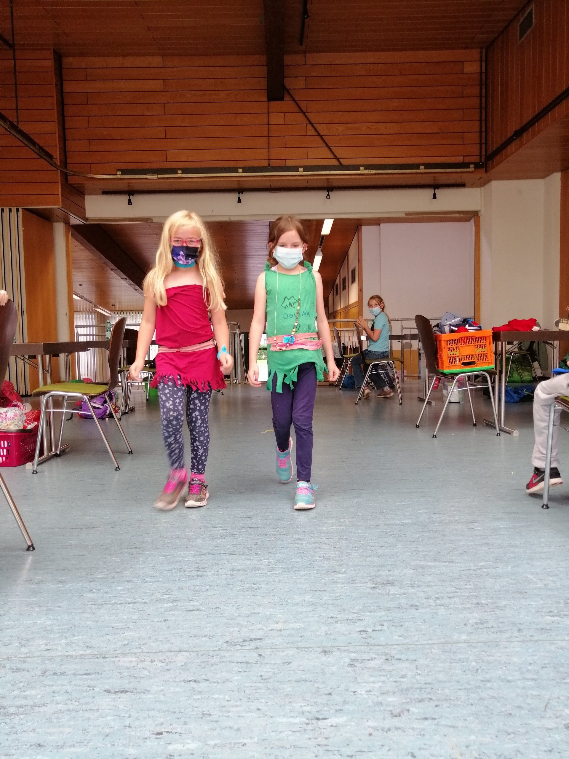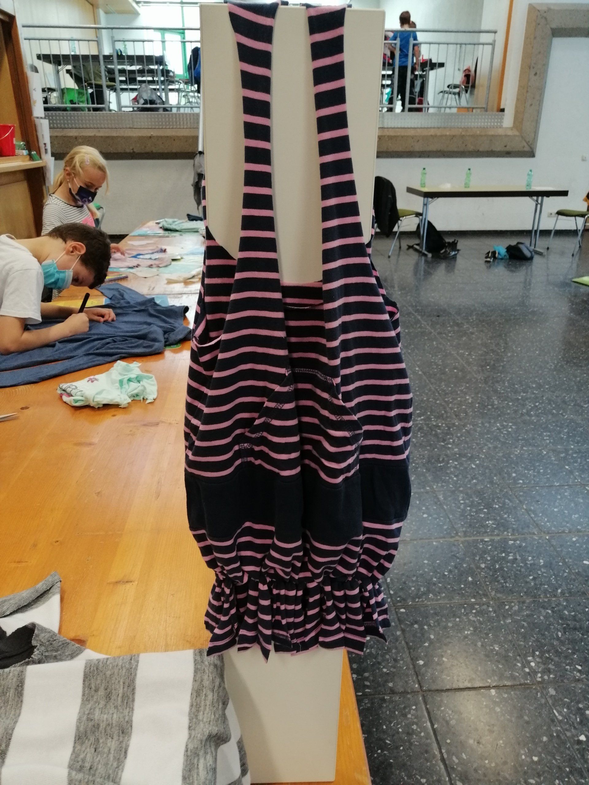 Große Freude hatten die Kinder in der dritten Ferienwoche auch beim Upcycling von alten Kleidungsstücken. So wurden aus ausrangierten und kaputten T-Shirts, Hosen, Socken etc. viele neue Dinge gestaltete, wie beispielsweise Schals, Taschen, Haarbänder oder Handpuppen und Kuscheltiere. Voller Stolz präsentierten die Kinder ihre Ergebnisse in einer kleinen Modenshow.