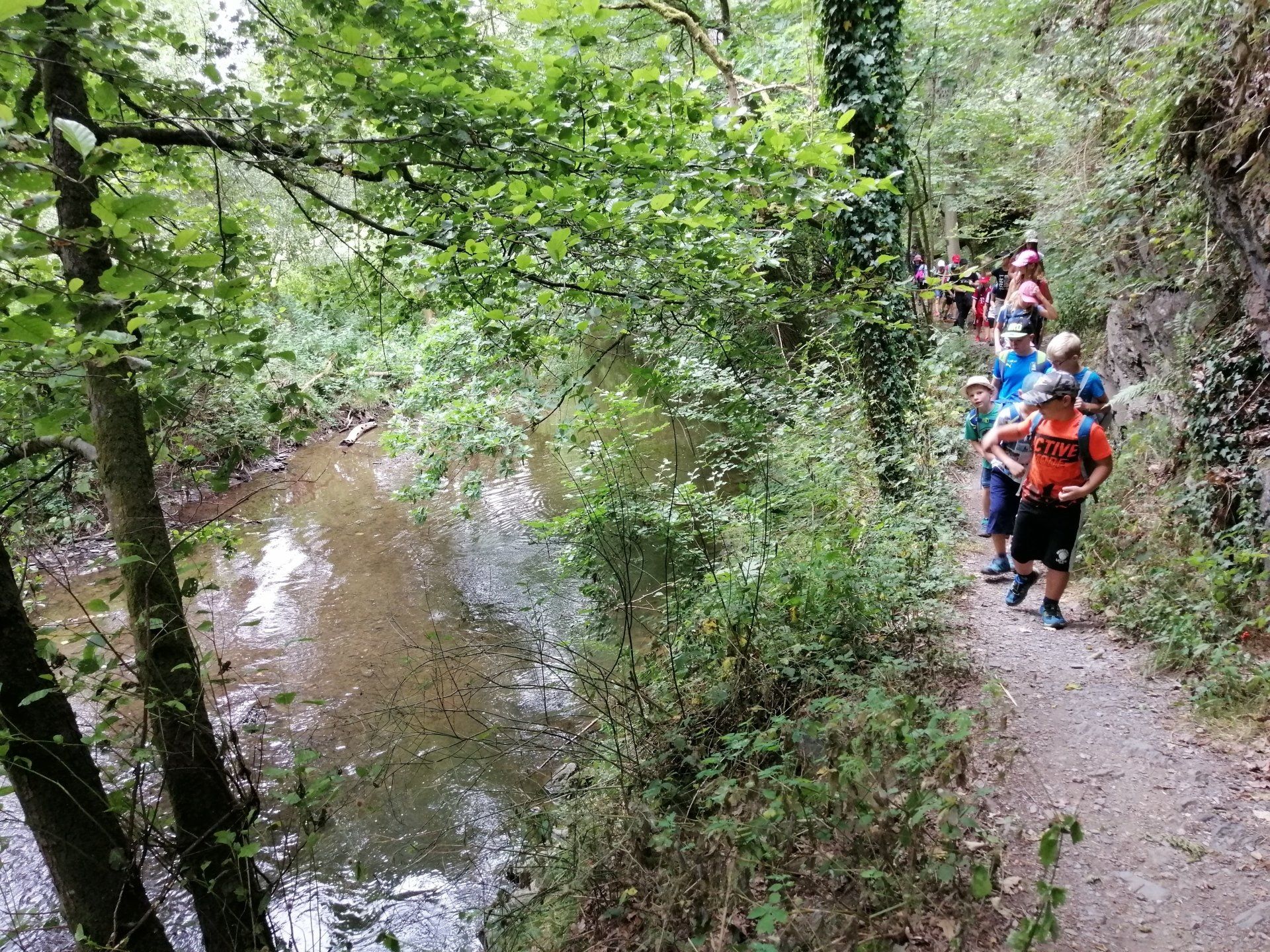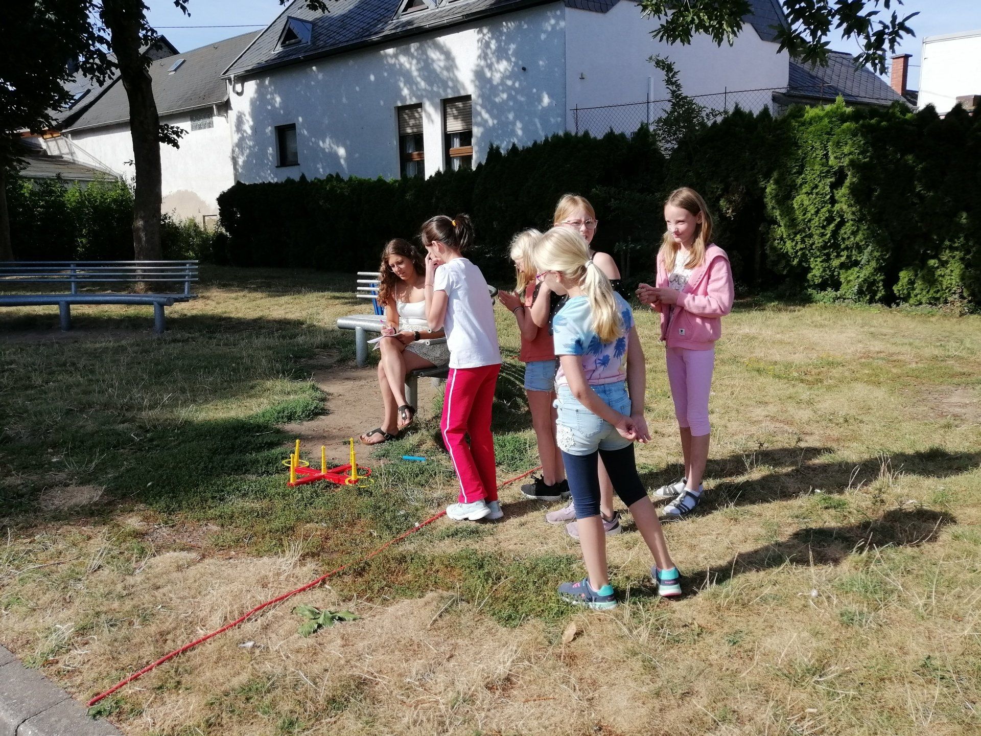 In der zweiten Ferienwoche konnten die Kinder wählen, ob sie an einer kleinen Wanderung mit Schatzsuche von Bassenheim nach Mülheim-Kärlich teilnehmen oder lieber direkt mit dem Bus zum Wasserspielplatz fahren wollten. Die tapferen Kinder, die trotz der warmen Temperaturen die Wanderung wählten, freuten sich anschließend umso mehr über das kühle Nass.