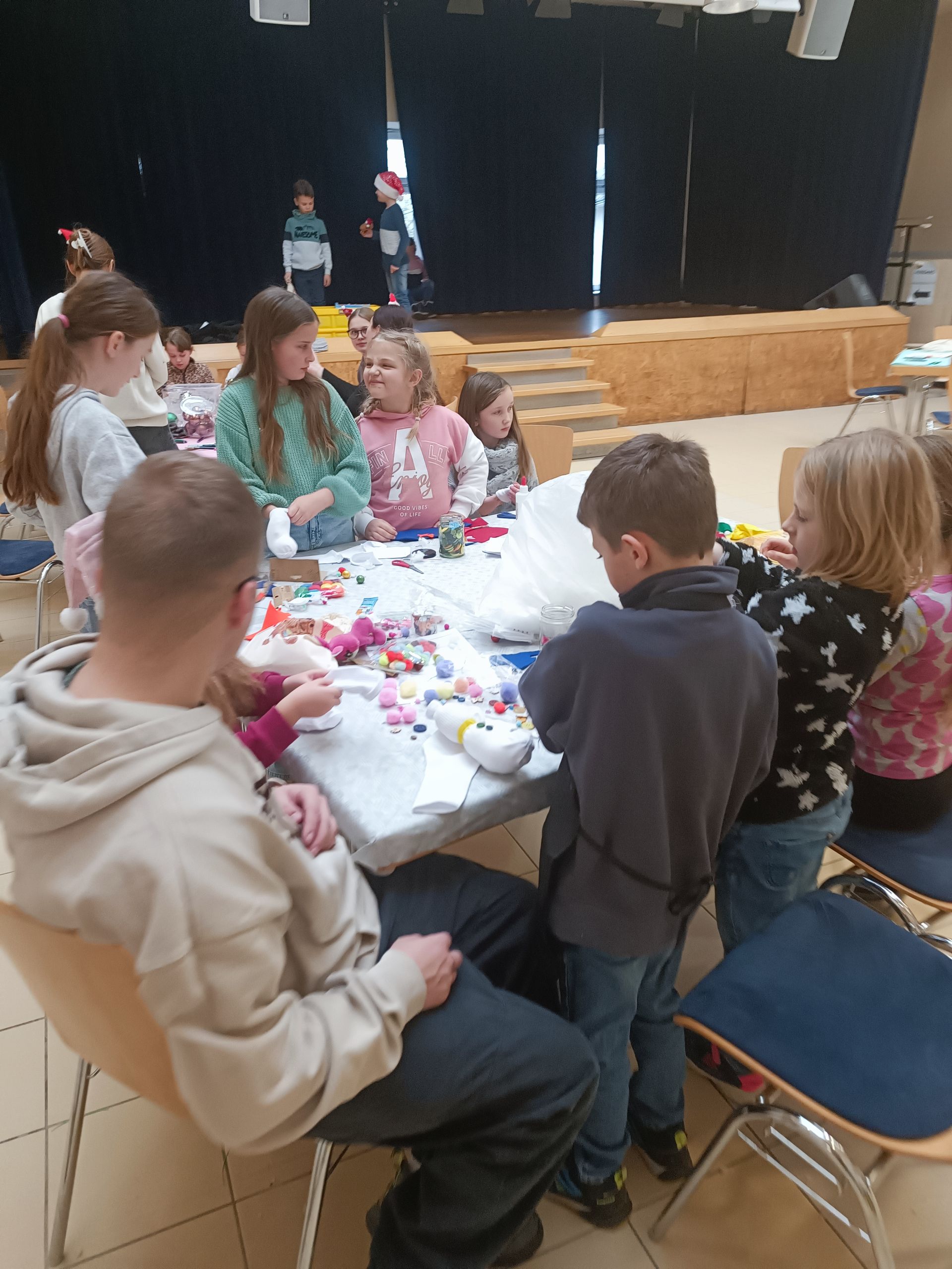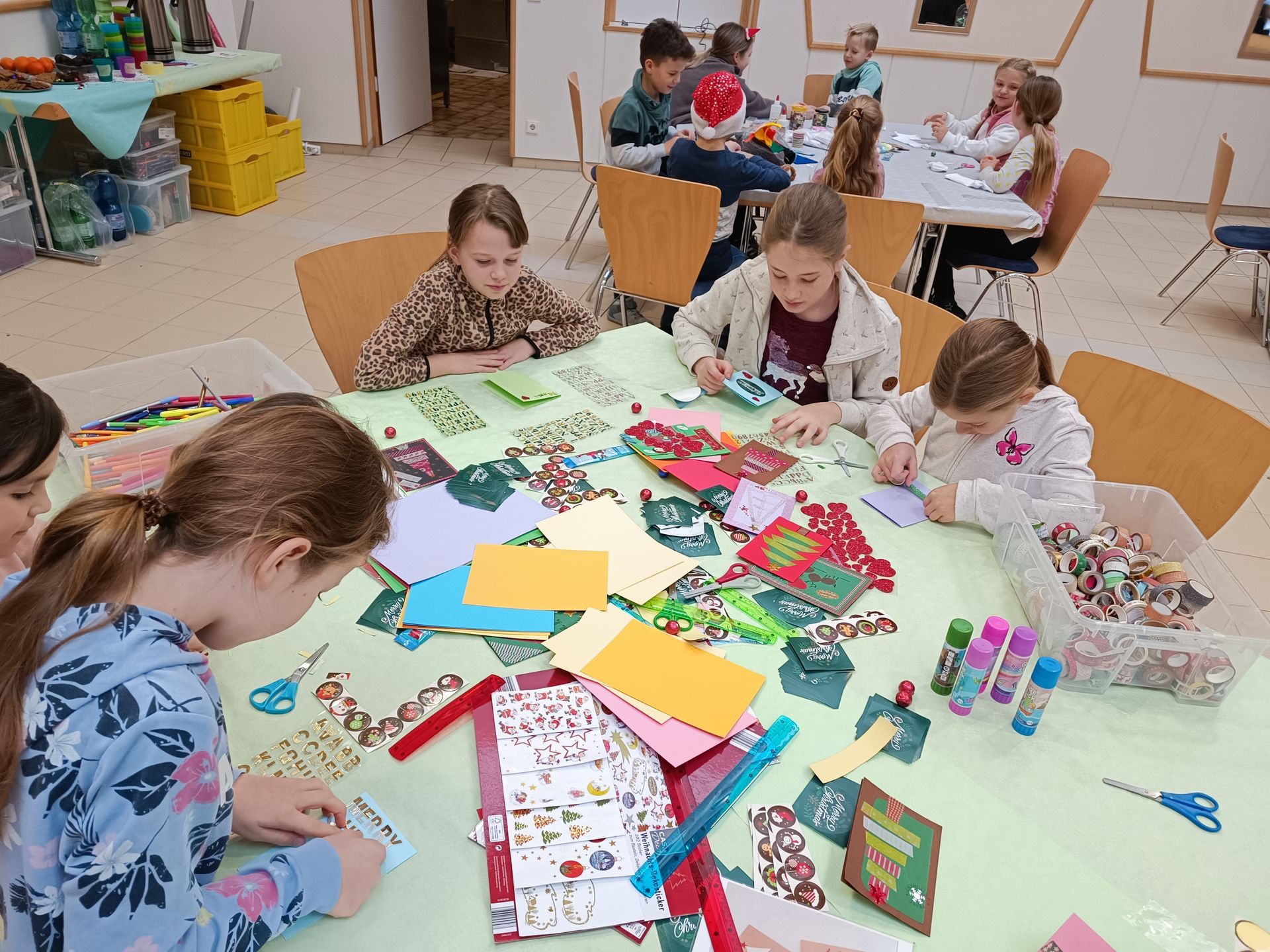 Die Kinder konnten aus acht verschiedenen Bastelangeboten ihre Favoriten wählen und ihrer Kreativität freien Lauf lassen. Ob Sterne gestalten, Weihnachtskarten verzieren oder individuelle Dekorationen basteln – die Möglichkeiten waren vielfältig und luden zum Mitmachen ein. Zusätzlich konnten sich die jungen Teilnehmerinnen und Teilnehmer bei drei unterschiedlichen Backaktionen beweisen und weihnachtliche Leckereien zubereiten.